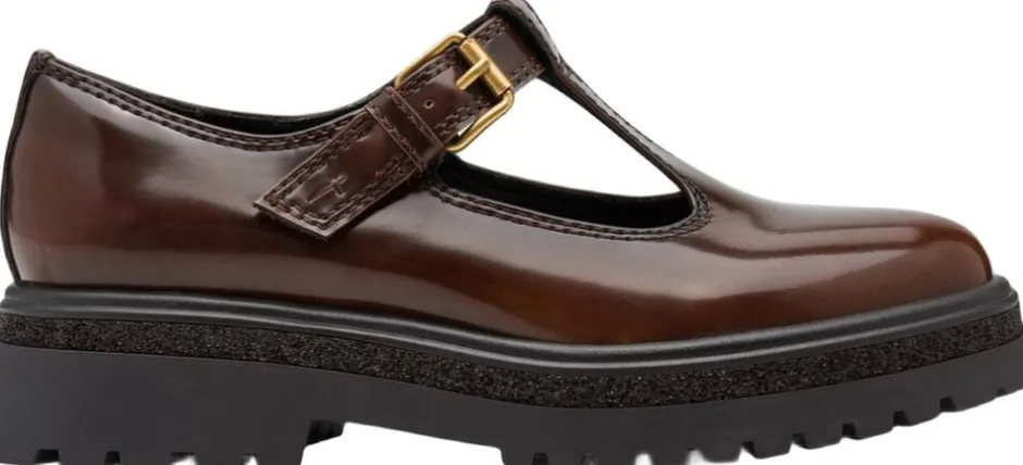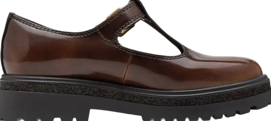 T- rems sko i muscat brun polido på en let profil sål med glimmer effekt som detalje. Lukningen er med velcro og snyde spænde
