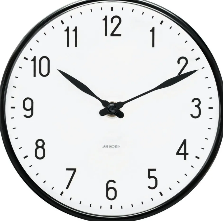 Arne Jacobsens Station ur blev oprindeligt tegnet til elvare-producenten LK 1941. Vægurets ikoniske design har allerede gjort det til en klassiker. Uret findes også to større størrelser på henholdsvis 21 og 29 cm. Arne Jacobsen er kendt for sin kompromisløse tilgang til arkitektur og design. Med fokus på helheden designede han designede også møbler, tekstiler, lamper og andet interiør til sine bygninger. Jacobsens ure står som smukke eksempler på denne helhedsorienterede tilgang til en opgave.