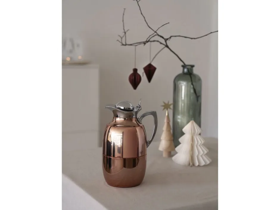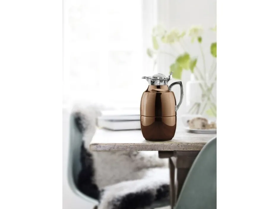 Alfi Juwel er en af verdens mest kendte termokander, og det oprindelige stilrene design kan dateres helt tilbage til 1918. Termokande i poleret stål i høj kvalitet. Dobbeltvægget AlfiDur-indsats i isolerende og hærdet vakuum-glas. Holder varmt i 12 timer, holder koldt i 24 timer. Unikt og praktisk hældesystem. Kan betjenes med én hånd. Ergonomisk, forkromet metalhåndtag. Fremstillet i Tyskland.