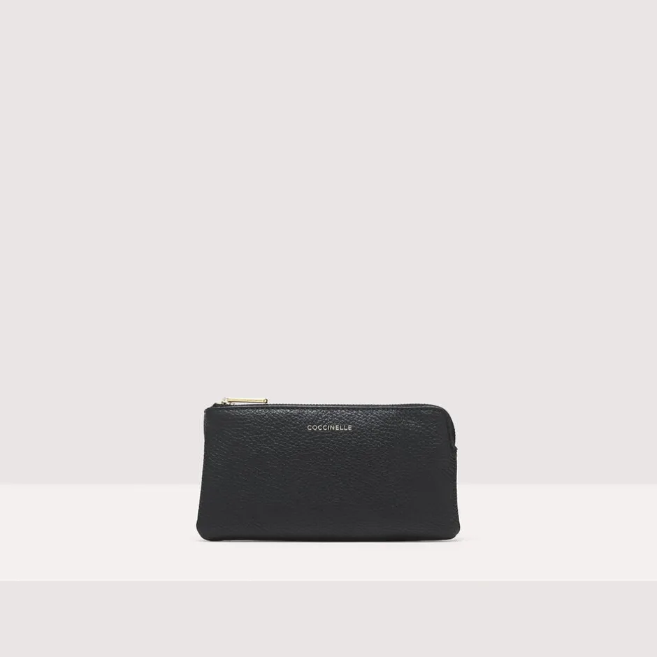 Skøn clutch fra Coccinelle i den smukkeste læderkvalitet. Clutchen er enkel i modellen med ét rum med lynlåslukning samt en aftagelig rem. 3 små indvendige lommer til kreditkort. Derudover har clutchen mærkets navn på fronten, hvilket giver en flot effekt. En rigtig fin clutch i en skøn kvalitet. Dustbag medfølger.