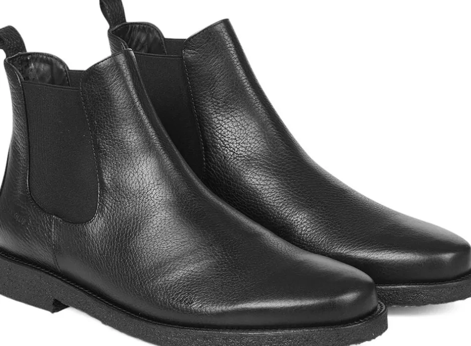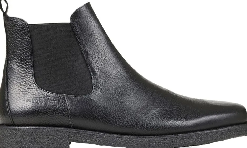 Støvlen har en mandelformet snude, funktionelle elastiksider, der gør støvlen nem at få af og på, hælstrop,