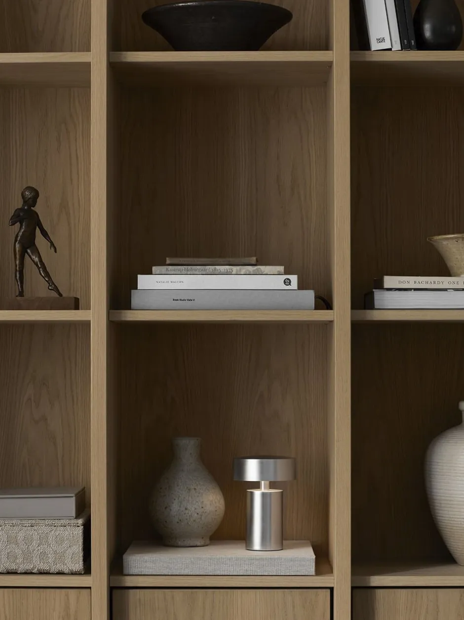 Drives af batteri for ultimativ frihed og fleksibilitet, leverer denne lille lampe på en imponerende måde en indbydende glød – justerbar i tre indstillinger – til både indendørs og udendørs rum. Det trådløse design oplades nemt via et skjult USB-stik i bunden og er også kompatibelt med Audo’s Charging Board, der kan genoplade flere enheder på én gang. Let og holdbar, med en smuk finish i enten anodiseret eller børstet aluminium, er dette et design, som du vil have glæde af at anvende på alle dine yndlingssteder.