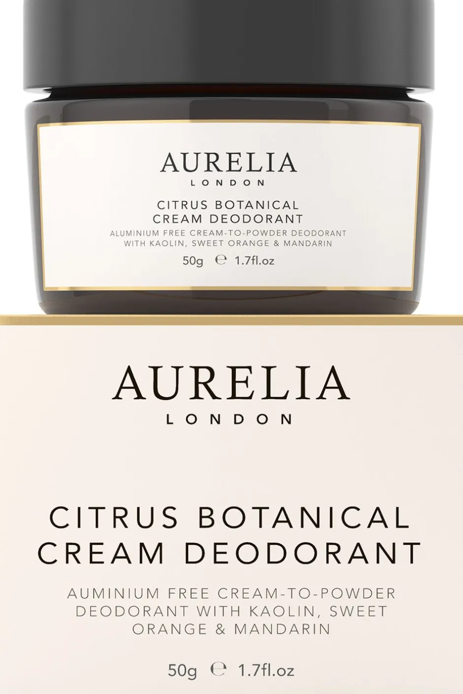 Som følge af Botanical Cream Deodorantens store succes, lancerer Aurelia Probiotic Skincare nu en helt ny citrus-version af denne kropspleje-must-have. Citrus Botanical Cream Deodorant er en naturlig, kraftfuld deodorant, der virkelig virker. Creme-til-pudder-konsistensen kan nemt påføres med fingerspidserne. Sheasmør fugter blidt huden, mens essentielle olier af Mandarin, sød Appelsin, Grapefrugt og Rosmarin, med deres antibakterielle egenskaber, blandet med destilleret Lavendel, skaber en behagelig, let duft og fjerner lugt. Ultra-fin, pudret, plantebaseret botanik, Pilerod og ren Kaolin, sætter sig usynligt på huden og absorberer din naturlige sveden i løbet af dagen, bevarer tørhed, hæmmer bakterier og resulterer i langvarig friskhed. ANVENDELSE: Påfør mængden af en fingerspids-størrelse og massér blidt ind i hele dit underarmsområde.