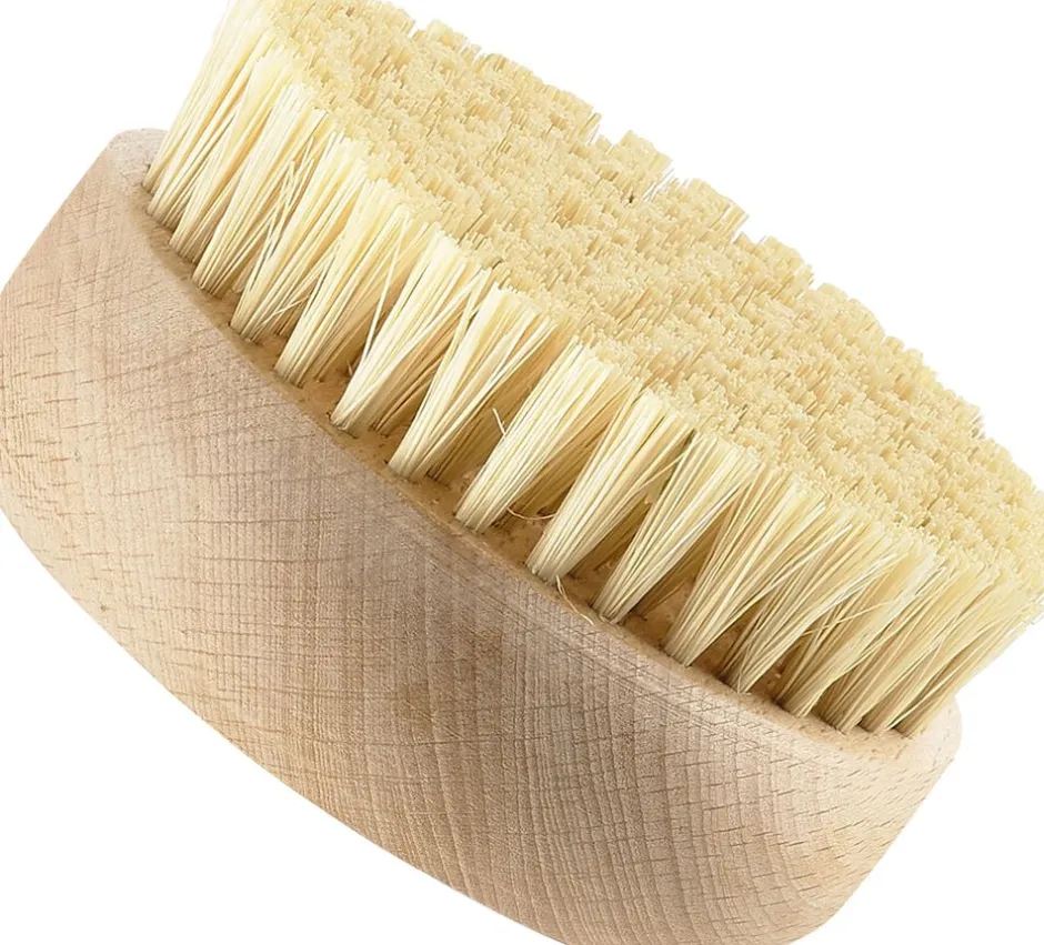 Den lille runde børste fra spaserien Inu er skabt til de små øjeblikke af nydelse og nærvær i en travl hverdag. Den er fremstillet i lys bøg og naturhår og har et blødt, organisk design, der er velegnet til fodpleje. Diam. 8,6 cm.
