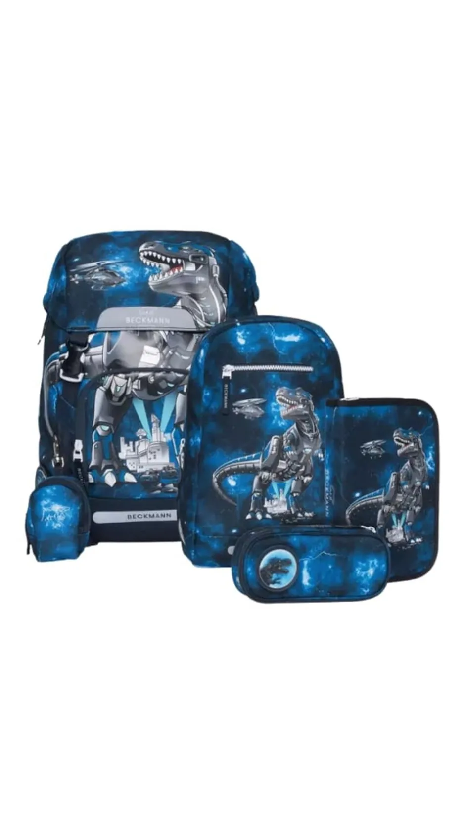 Sættet indeholder: Skoletaske, gymnastik/turtaske, onezip penalhus med fyld og ovalt penalhus, alt sammen i matchende motiver.