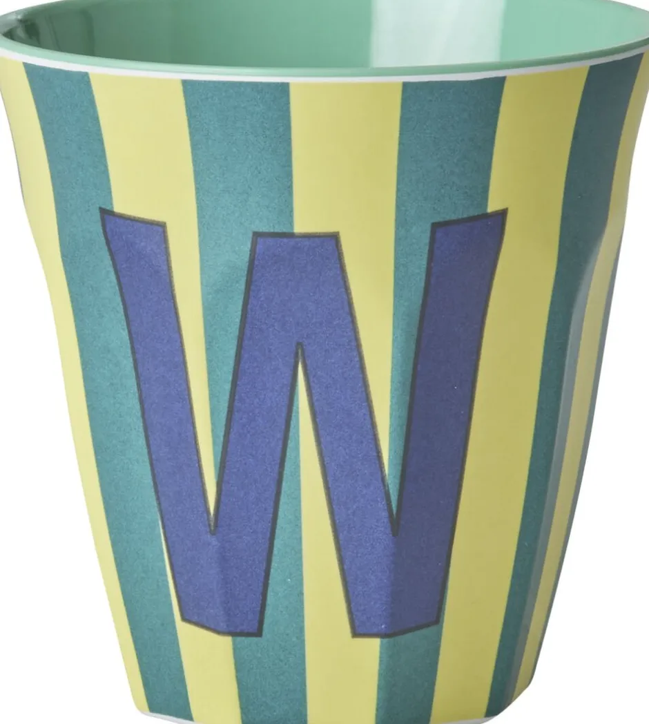 Den skønne melaminkop med bogstaver. Mix og match på kryds og tværs, og skriv lige det budskab, der falder dig ind med de forskellige kopper. Eller gør det enkelt for alle i familien at have deres helt egen personlige kop. Her er bogstavet W. Koppen er en favorit, og det er der god grund til. Brug den til alt muligt – som drikkekrus, til skriveredskaber eller til lækre smoothies. Kun fantasien sætter grænser. Vær opmærksom på, at produkterne ikke er egnet til mikroovn.