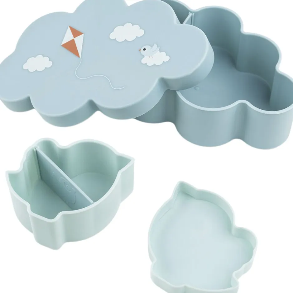 Snackboksen og madkassen har en praktisk indsats, der gør det muligt at dele madkassen op i to rum