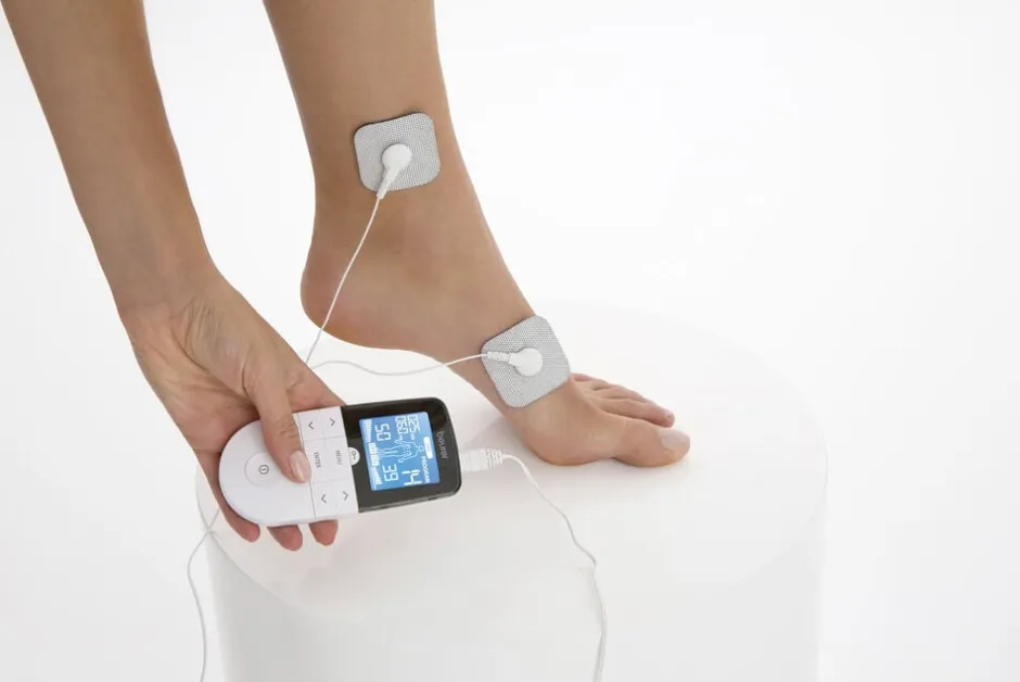 TENS står for transkutan nervestimulation, og virker ved at stimulere nerverne, og smertesignalerne der sendes til hjernen blokeres. Samtidig aktiveres kroppens naturlige smerteforsvar, nemlig udskillelsen af endorfiner. TENS anvendes bl.a. til gigt, rygsmerter og seneskedehindebetændelse.