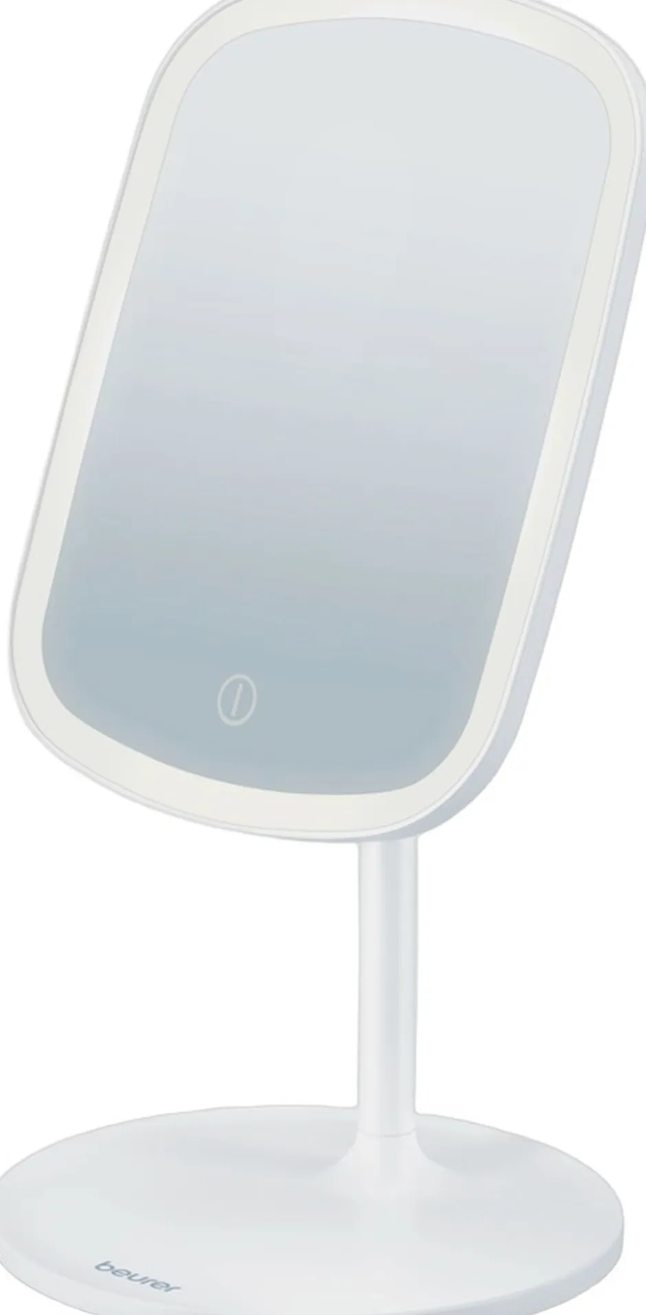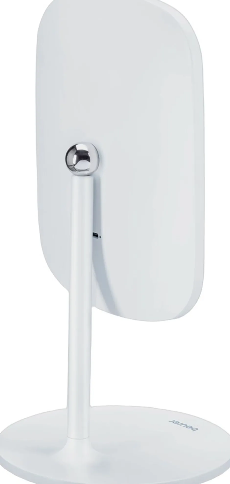 Selve spejlet er aftageligt og fæstnes på foden via en magnet udformet som et kugleled.