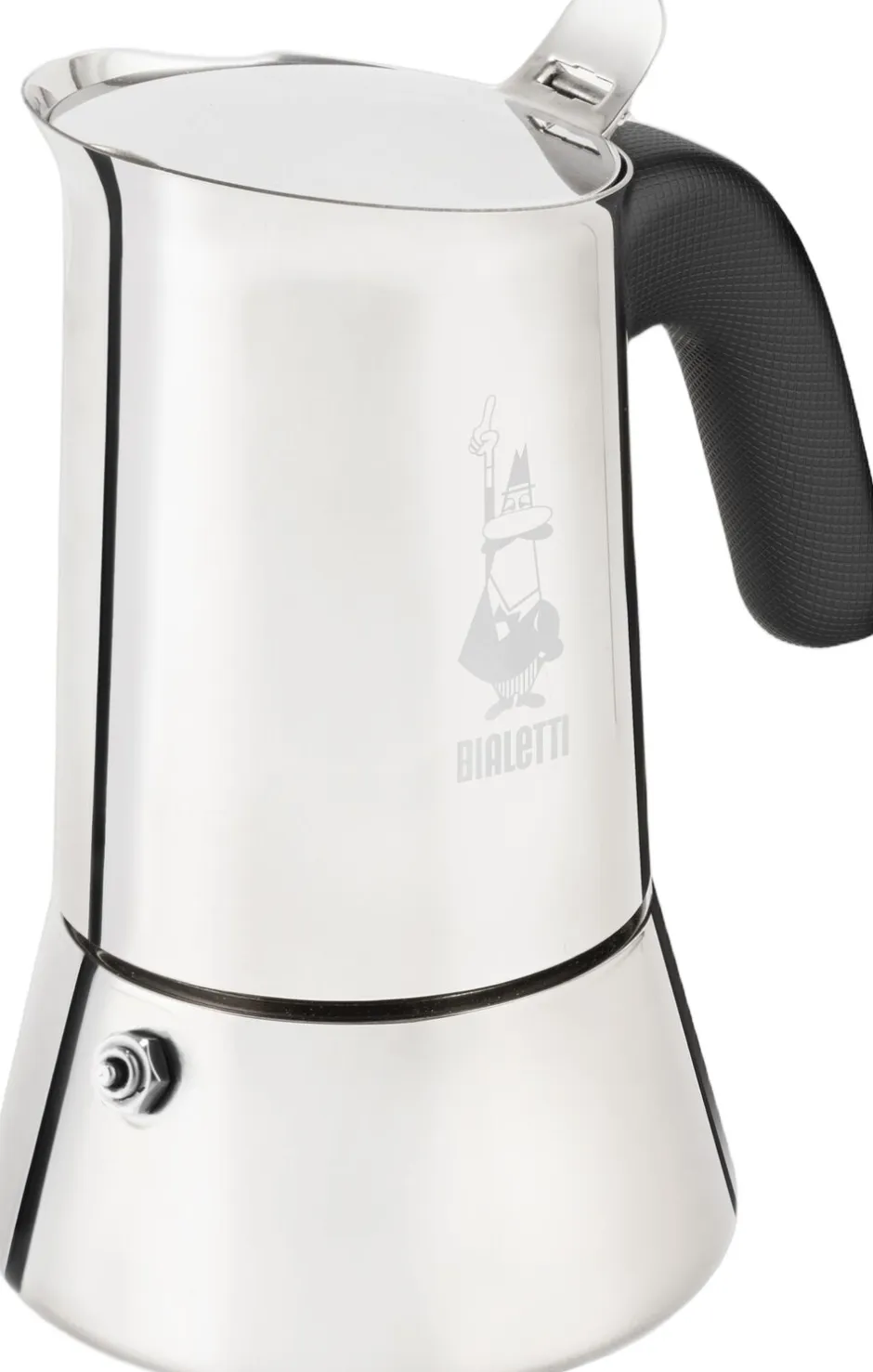 Bialetti Venus er en italiensk espressomaskine lavet af rustfrit stål, og kan bruges induktionskogeplader samt gas-el komfurer. 10 espressokopper a 460 ml. Varmeafvisende plastikhåndtag, hvis ergonimiske form sikrer en behagelig hældning af den frisklavede kaffe. Venus elegante stilrene design er en flot tilføjese til dit køkken, og gør det nemt at lave ægte italiensk kaffe derhjemme. Rengør miljøvenligt uden rengøringsmidler og kanden tåler ikke opvaskemaskine.