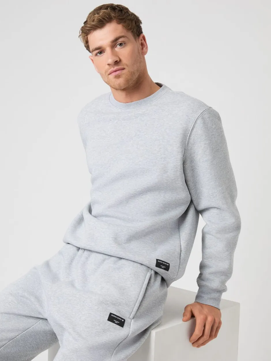 En stilfuld rund hals til de køligere sommerdage. Björn Borg Centre Crew er lavet af en superblød blanding af bomuld og polyester i børstet fleece. Den fås i en almindelig pasform med ribstrikket hals og nederste kant, ribstrikket trekantsdetalje ved halsen og et ikonisk vævet mærke over sømmen.