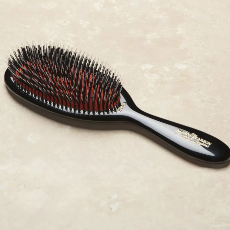 • Masserer og stimulerer hovedbunden: En Mason Pearson børste masserer og stimulerer hovedbunden, hvilket frigiver hårbundens naturlige olier.