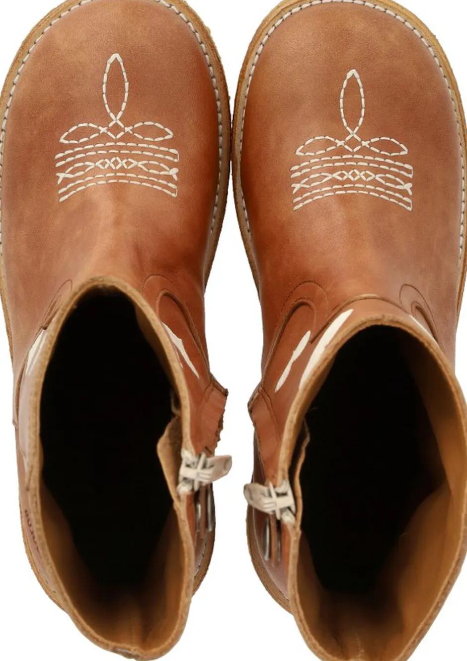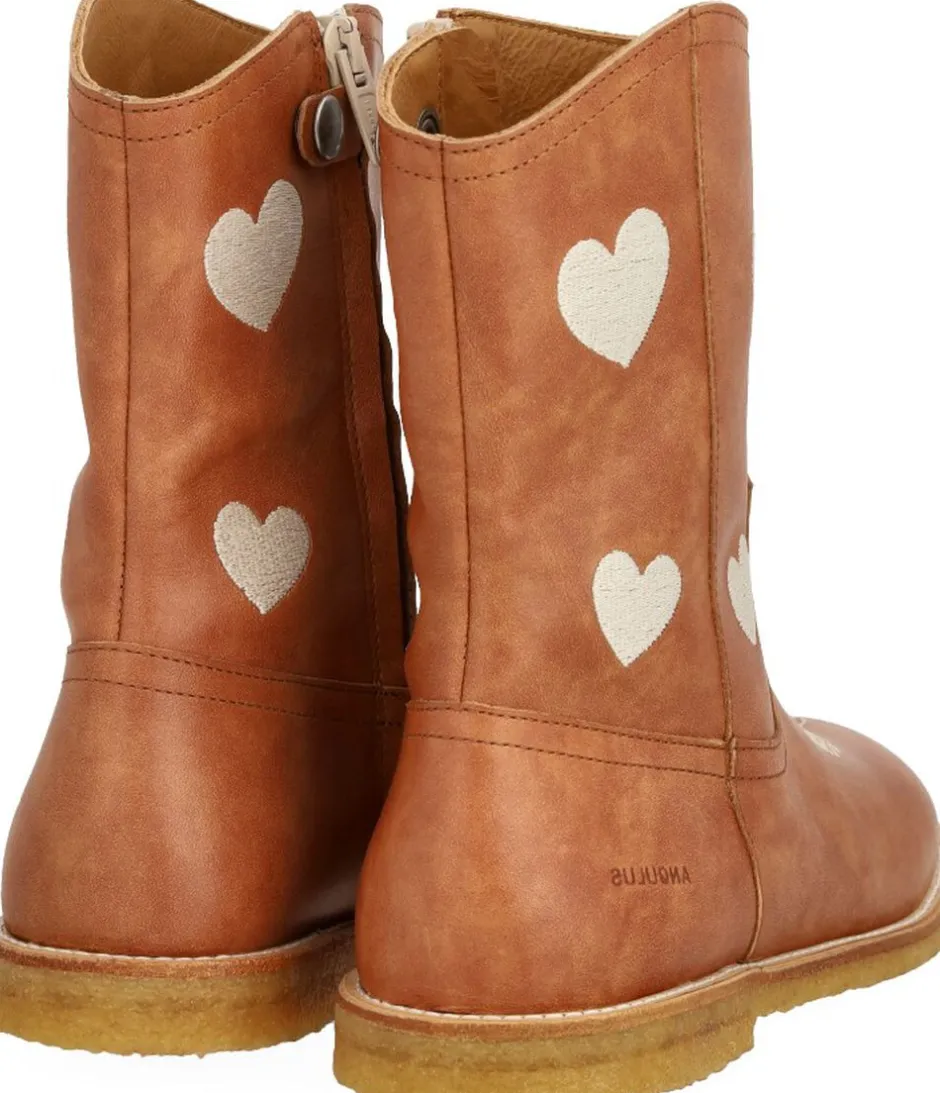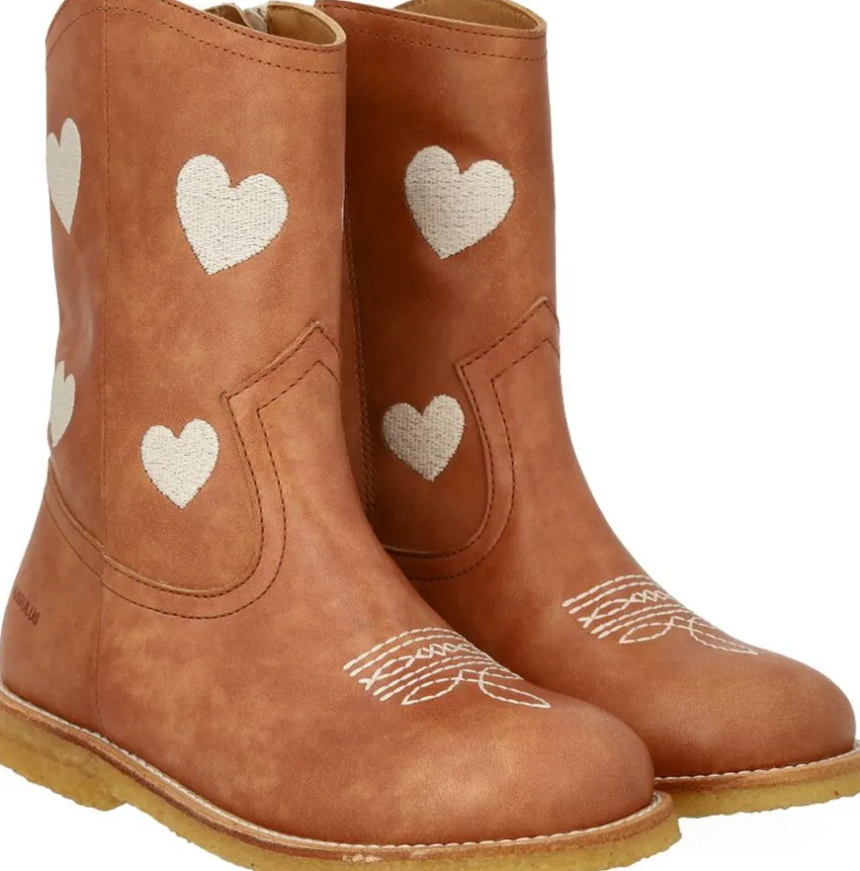 Cowboystøvle i læder med broderede hjerter og western-inspireret tone-i-tone broderi.