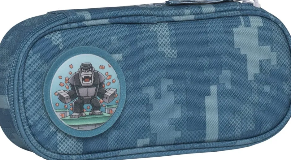 Det ovale penalhus er rummeligt og har en separat sektion til de mest brugte blyanter, og en lomme der lukkes med lynlås. Ydersiden er dekoreret med designs der matcher skoletasken, og penalhuset kommer med en aftagelig velcro button. Leveres uden indhold.
