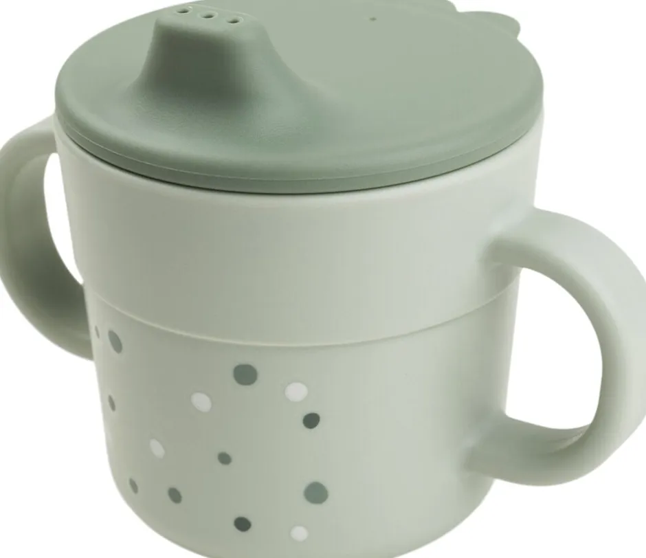 Foodie tudkoppen er den perfekte 2-i-1-kop til barnet, der øver sig i at drikke selv. Det praktiske tudlåg begrænser griseriet, og når dit barn er klart, kan låget tages af, mens de to håndtag vil sikre et godt greb for de små hænder. Koppen har en praktisk, skridsikker bund og tåler både opvaskemaskine og mikroovn. Efter utallige familiemiddage og børnefester kan koppen affaldssorteres som plast og genanvendes til produktion af nye hverdagsprodukter. Den fine grønne tudkop er pyntet med Happy dots og gør ethvert måltid til en fest. Koppen har en mat, silkeblød overflade og matcher resten af Foodie kollektionen. Lågets mørkegrønne farve skaber en fin, tofarvet detalje.
