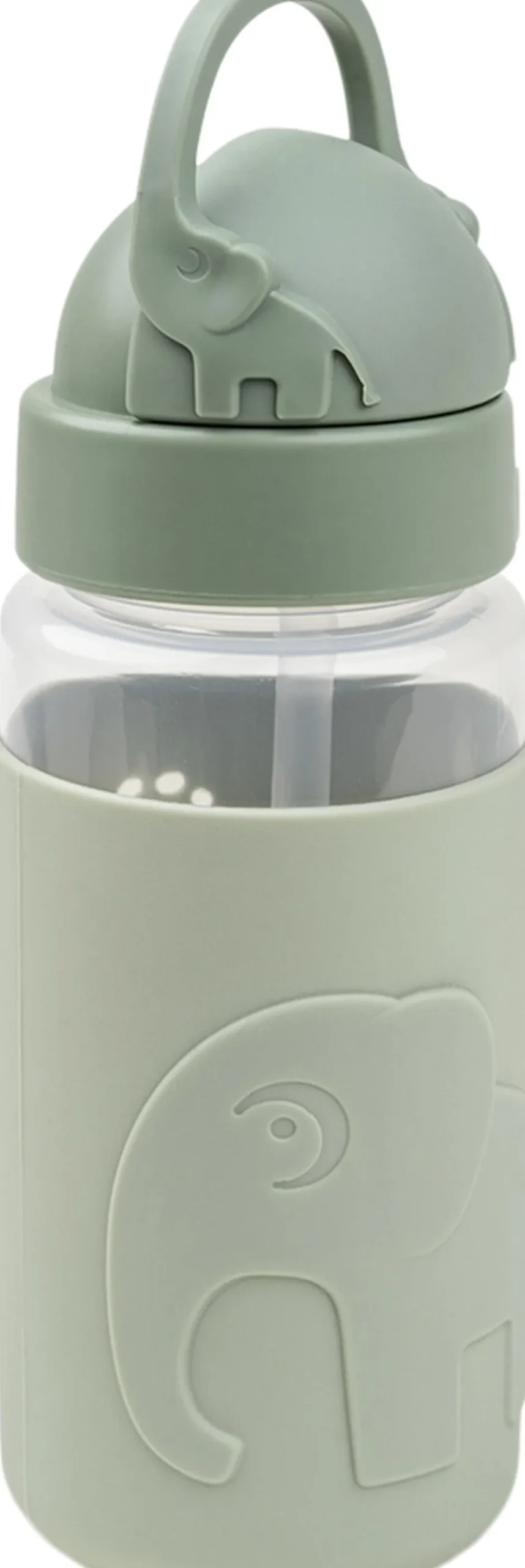 Den søde drikkedunk med sugerør og et easy-grip omslag passer perfekt i ungernes rygsæk. Drikkeflasken har et smart sugerør, der kan gemmes i låget og forhindrer at væske spildes. Håndtaget hjælper de små hænder til at finde sugerøret frem igen. Den spildfrie børne-drikkeflaske er uundværlig på farten og gør det sjovt for barnet at drikke masser af vand. Silikone-omslaget sikrer et godt greb og et ekstra sugerør samt mundstykke er inkluderet. Silikone-omslaget er præget med Elphee og grønne toner pryder vandflasken.