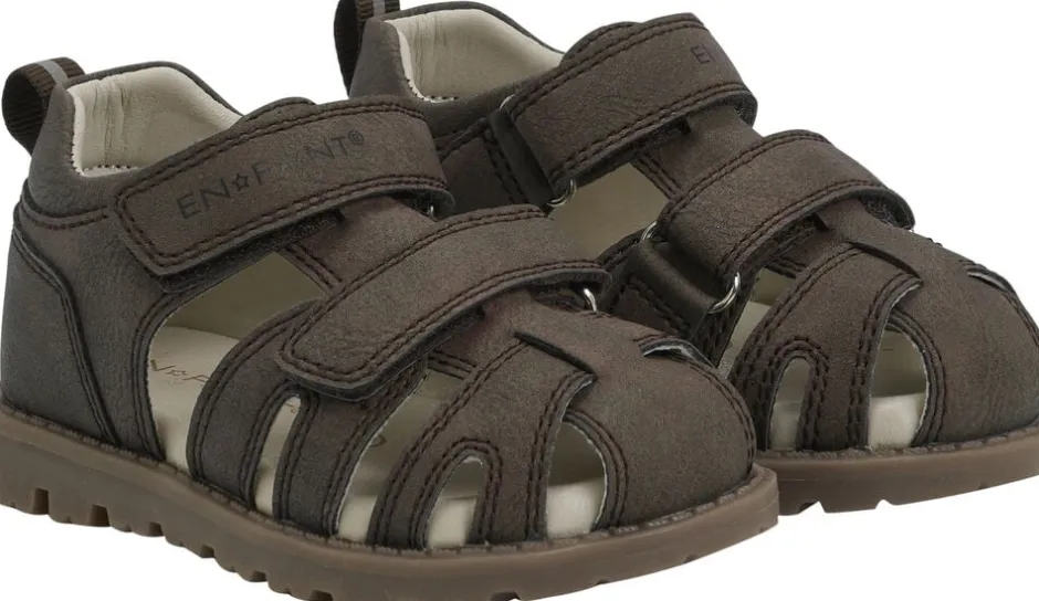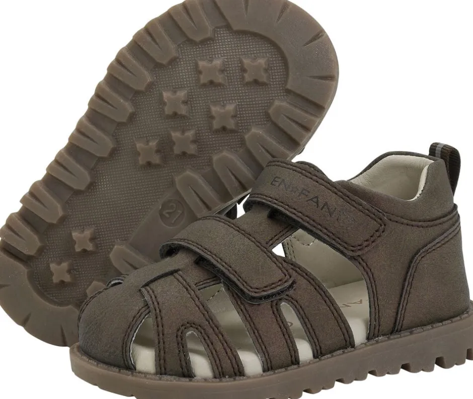 Flotte sandaler fra Enfant. Sandalerne har et flot, flettet mønster og er lukkede ved tæerne. Sandalerne lukkes med to smale velcrolukninger, som gør det nemt af tage dem af og på. Enfant logo på den øverste lukning. Refleks bagpå. Der anbefales max 1 cm i voksetillæg. Indvendige mål i cm: 20 = 12,7 21 = 13,4 22 = 14 23 = 14,7 24 = 15,3 25 = 16 26 = 16,7 27 = 17,3 28 = 18
