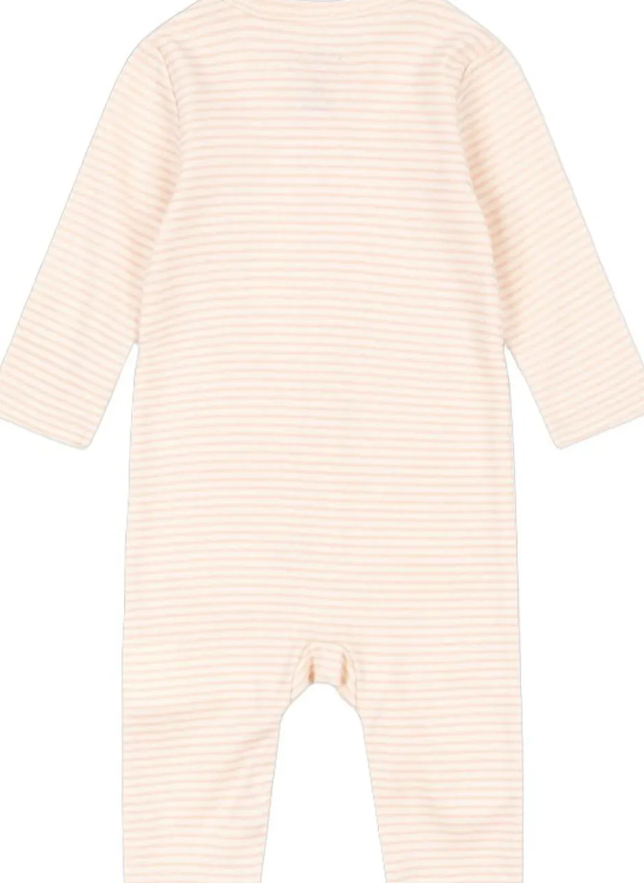 Blød økologisk bomulds onesie til nyfødte. Designet med en fuld trykknapåbning foran og ned ad benet, hvilket gør det nemt og bekvemt at skifte din baby
