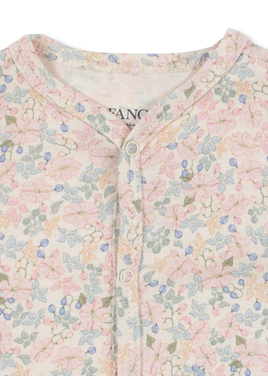 Blød økologisk bomulds onesie til nyfødte. Designet med en fuld trykknapåbning foran og ned ad benene, hvilket gør det nemt og bekvemt at skifte din baby