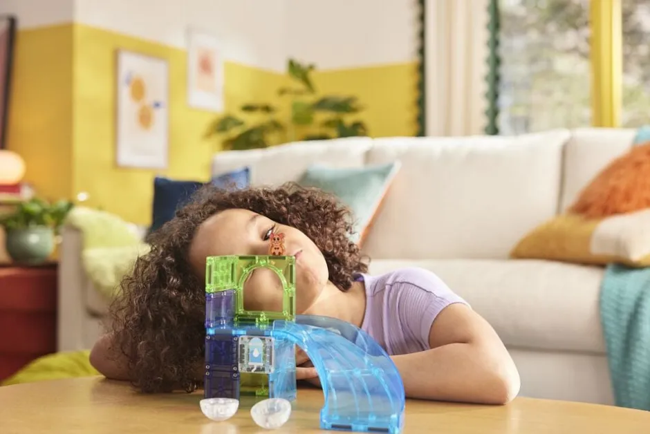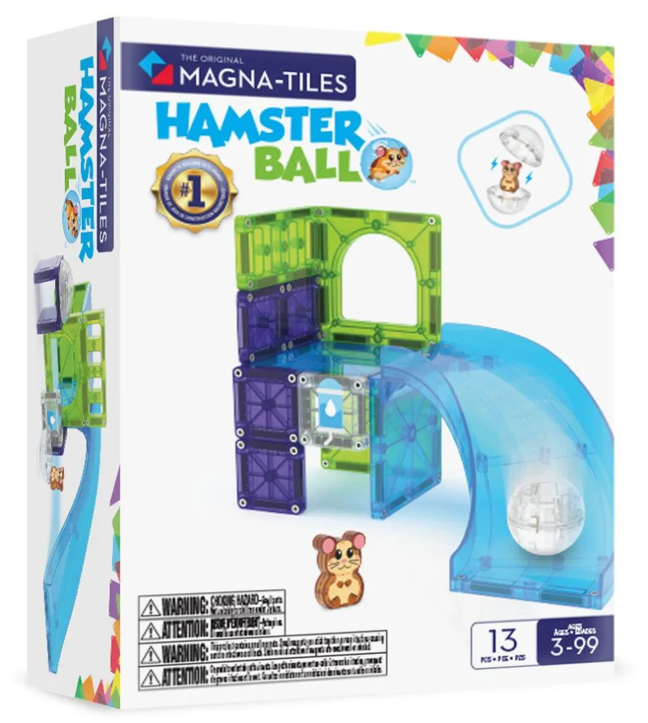 Et sjovt magnetisk mini bygge- og legesæt med hamsterfigur, hamsterbold og rutchebane fra MAGNA-TILES Fra 3 år