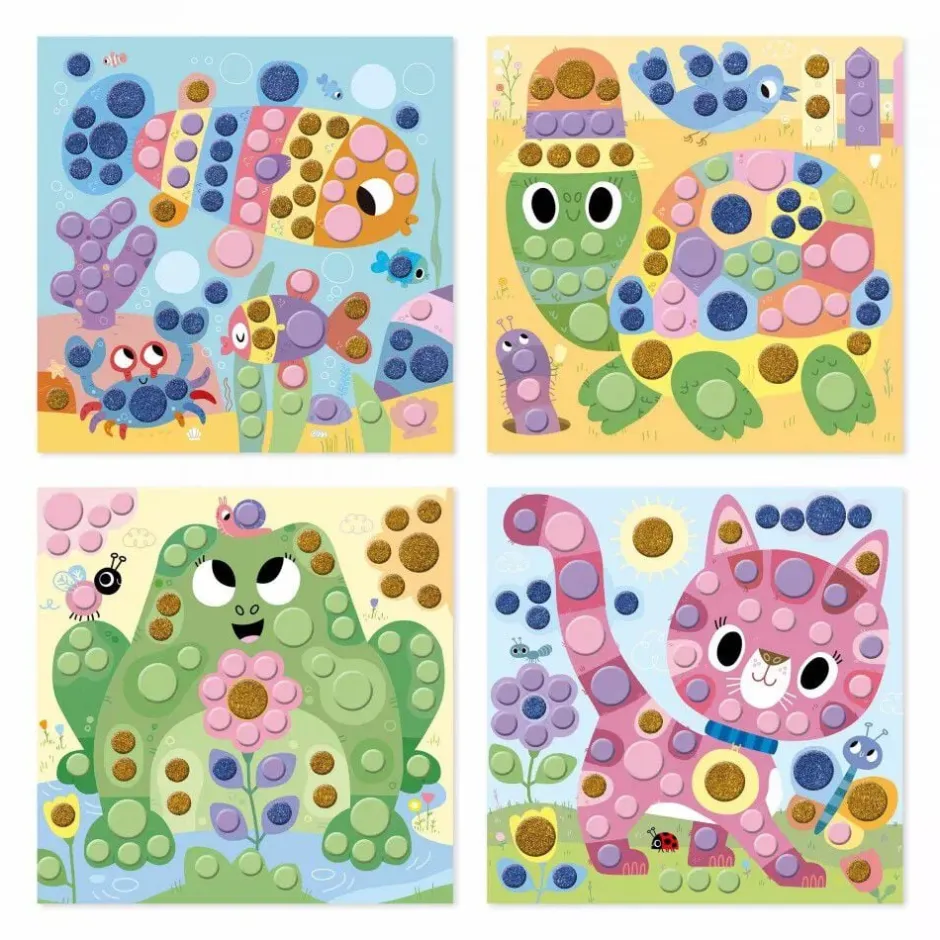 Denne kreative kasse er perfekt til børn fra 4 år og opefter Se de små arbejde med deres finmotorik og kreative flair, når de dekorerer 4 superkære dyrebilleder med runde skumklistermærker Clever Box gør præcis, hvad navnet antyder: den omdannes til et staffeli, hvor de smukke kreationer kan udstilles Dette håndværkssæ t består af 3 ark med runde klassiske skumklistermærker og 2 ark med runde glitrende skumklistermærker, så børnene kan dekorere, som de vil Børnene kan bruge de n medfølgende instruktionshæfte og de farvede konturer på billederne til at sætte det tilsvarende klistermærke det rette sted Det tager ca 2 timer at færdiggøre de 4 billeder Dette kreative sæt er en del af My Arts og Crafts-serien, som har superkære pastelfarvede dyr og introducerer de små til deres første praktiske h åndværksaktiviteter