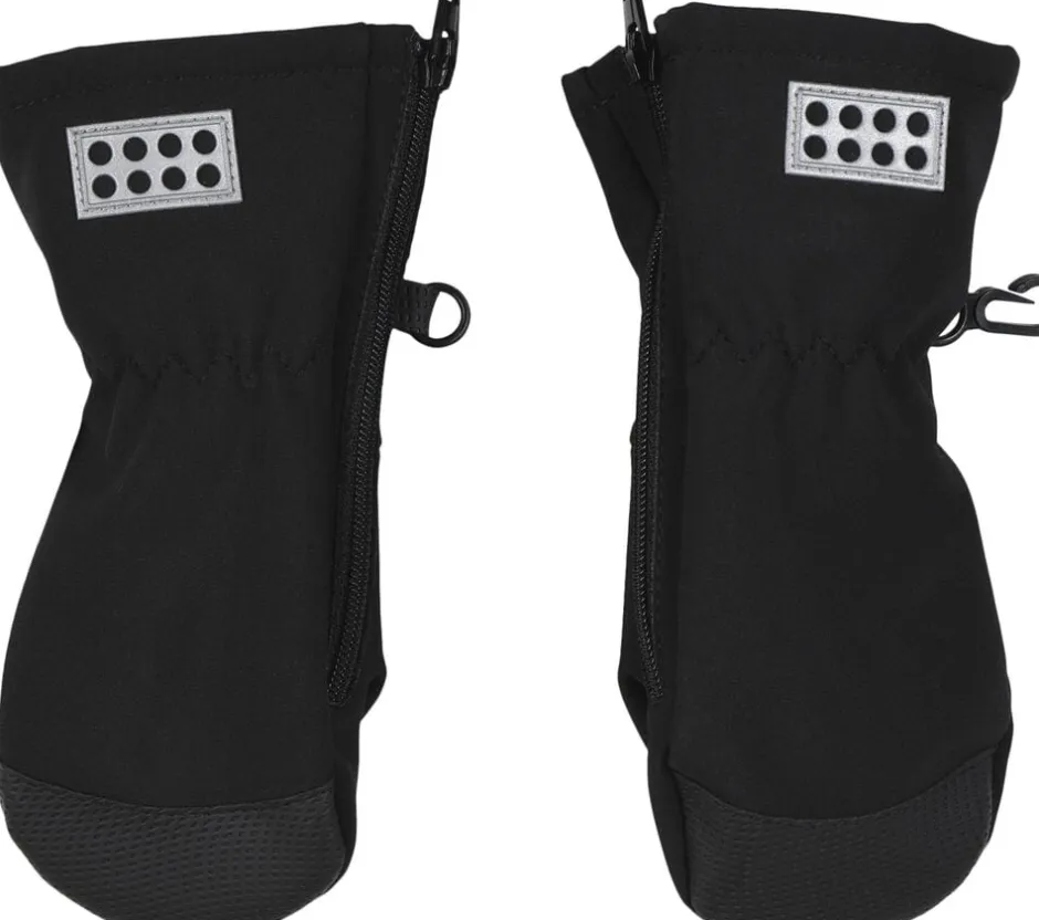 Vandafvisende LEGO softshell-luffer til små børn. Vanterne har et vandsøjletryk på 8.000 mm og er åndbare og vindtætte. Der er en elastik ved håndleddet og refleks på forsiden. Inden i håndfladen er der en PU-coating for et bedre greb.
