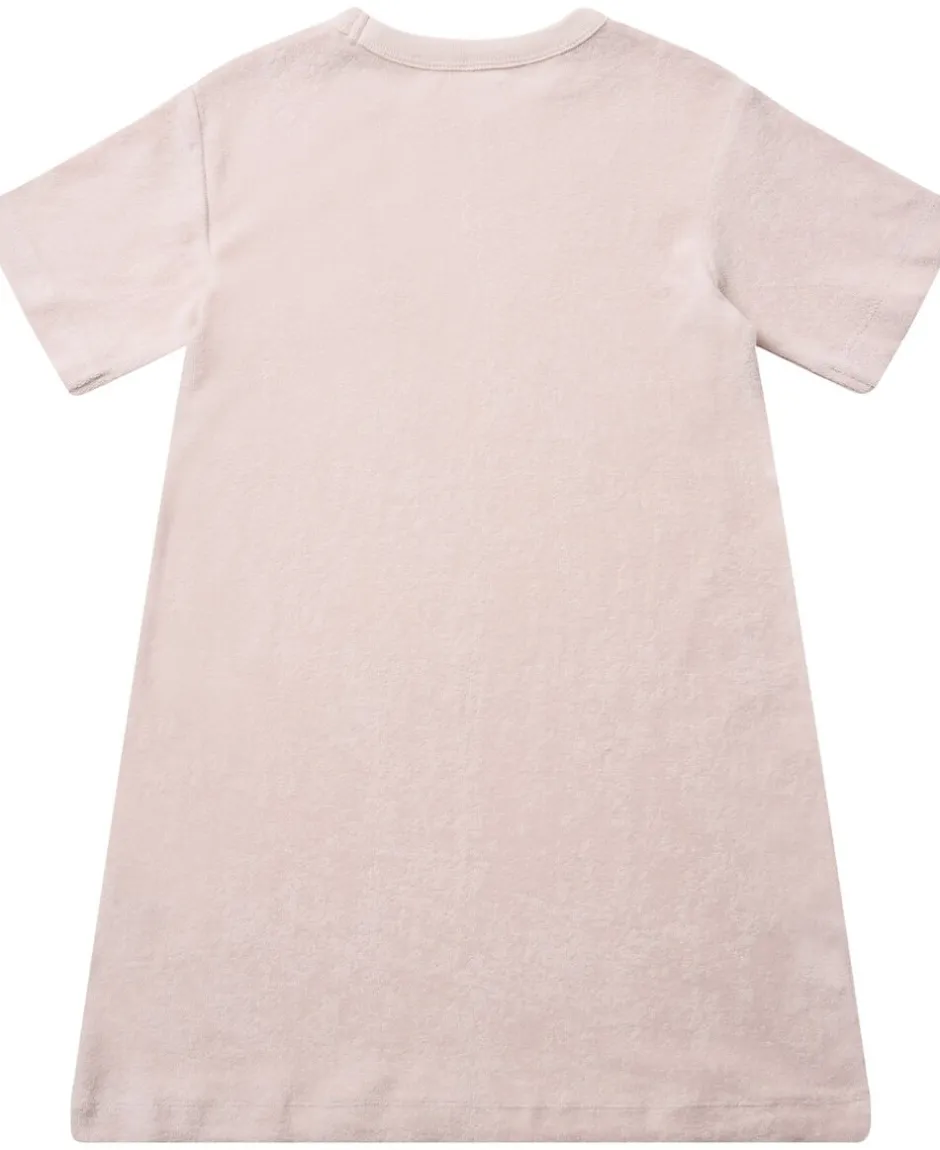 Kjole fra Magasin du Nord Collection i den blødeste kvalitet af 100% økologisk bomuldsfrotté med GOTS-certificering. Kjolen er enkel i modellen med korte ærmer, rib i den runde halsudskæring samt en casual, løs pasform. En skøn kjole i en lækker kvalitet.