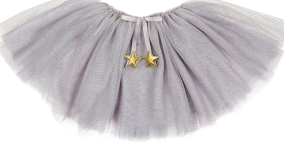 Dette sofistikerede grå tylskørt er i 6 lag stof med elastisk i taljen. Kan bruges både til fest og udklædning evt. ved at sætte et par matchende fevinger og en tryllestav til eller hverdag med et par glitterbriller og en t-shirt. Passer i alderen 3-10 år.