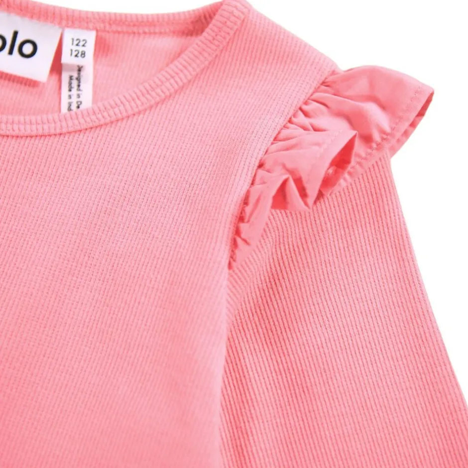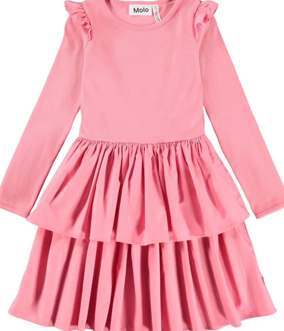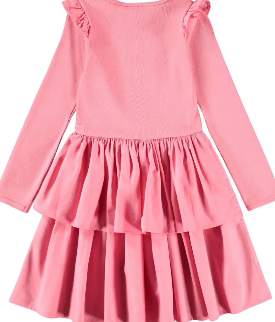 Denne langærmede kjole fra Molo er lavet af økologisk bomuld og har en tætsiddende ribbet jerseytop med rund hals. Kjolen har en lille flæse ved skuldrene og et skørt i dobbeltlag bomuldspoplin, der tilføjer masser af fylde.