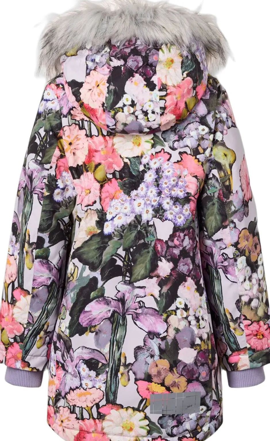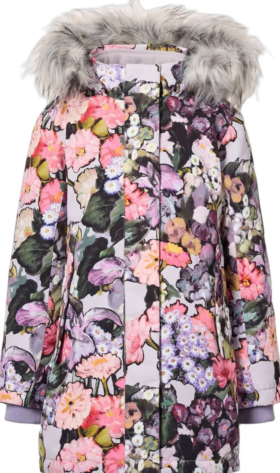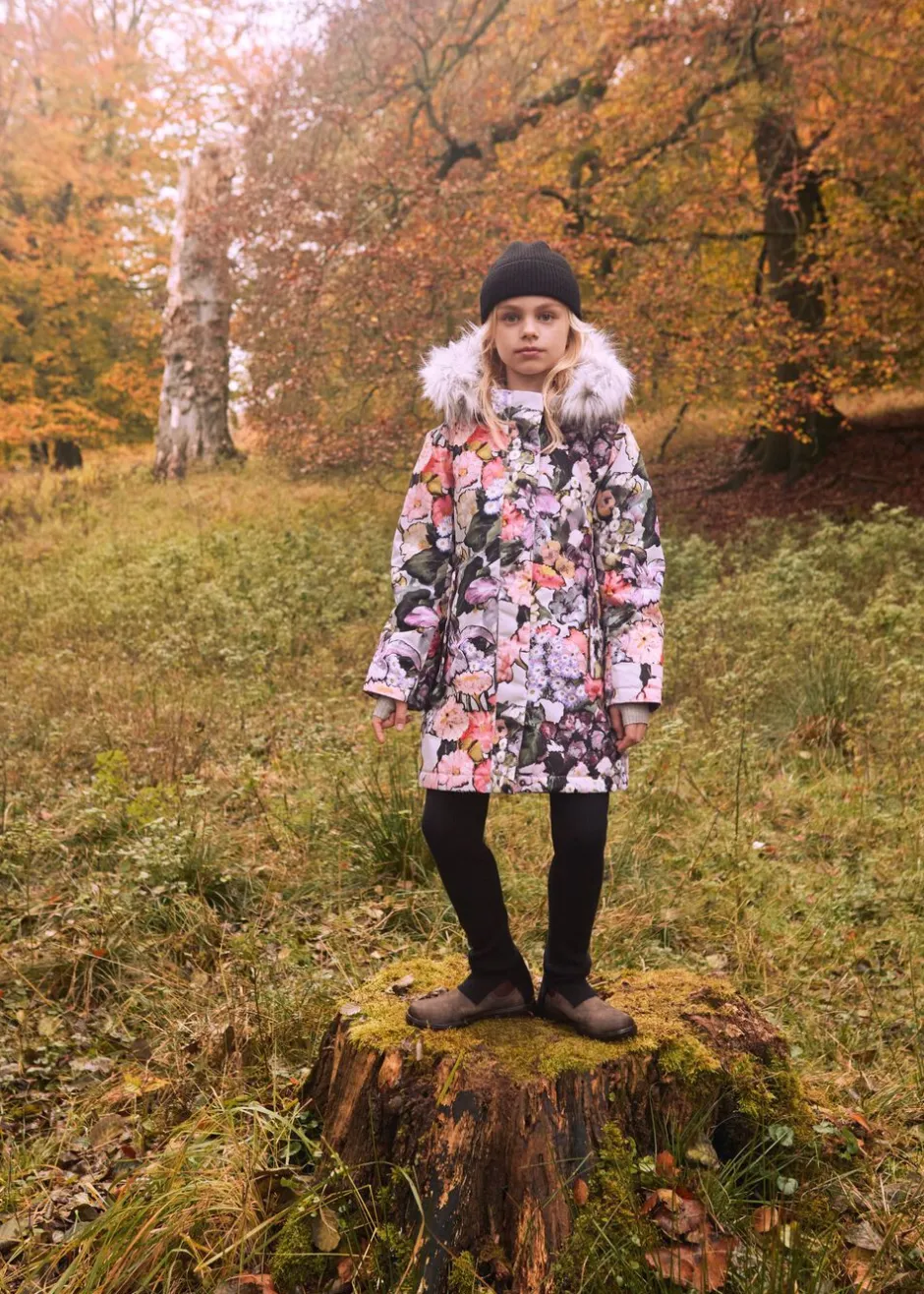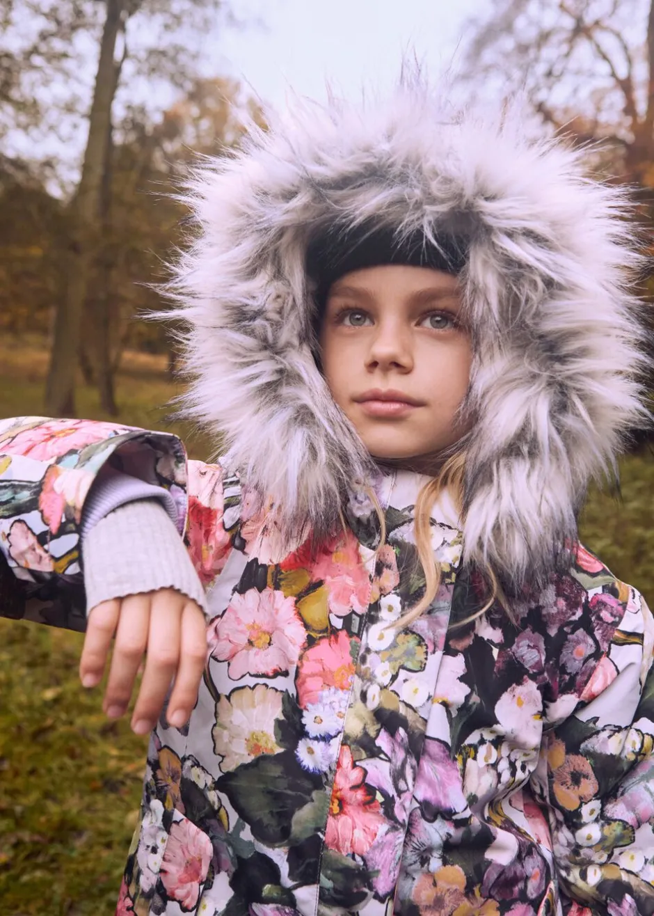 Denne sorte jakke fra Molo er lavet i genanvendt nylon med praktisk lynlåslukning, høj krave og aftagelig hætte med faux fur kant. Jakken er knælang og har frontlommer, ribkant ved håndleddene og en stor refleks bagpå.