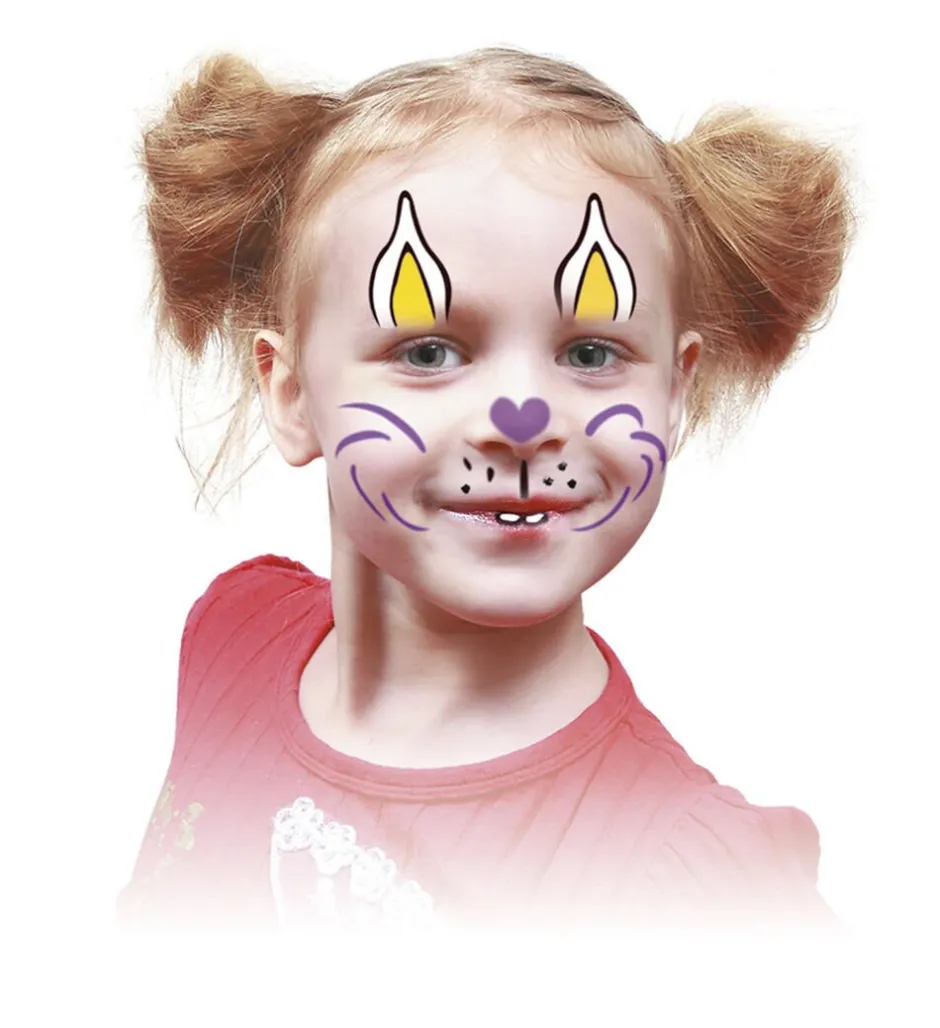 Ansigtsmakeupsæt 8 farveblokke. 8 skub-op makeupstifter, 2 pensler og 2 svampe