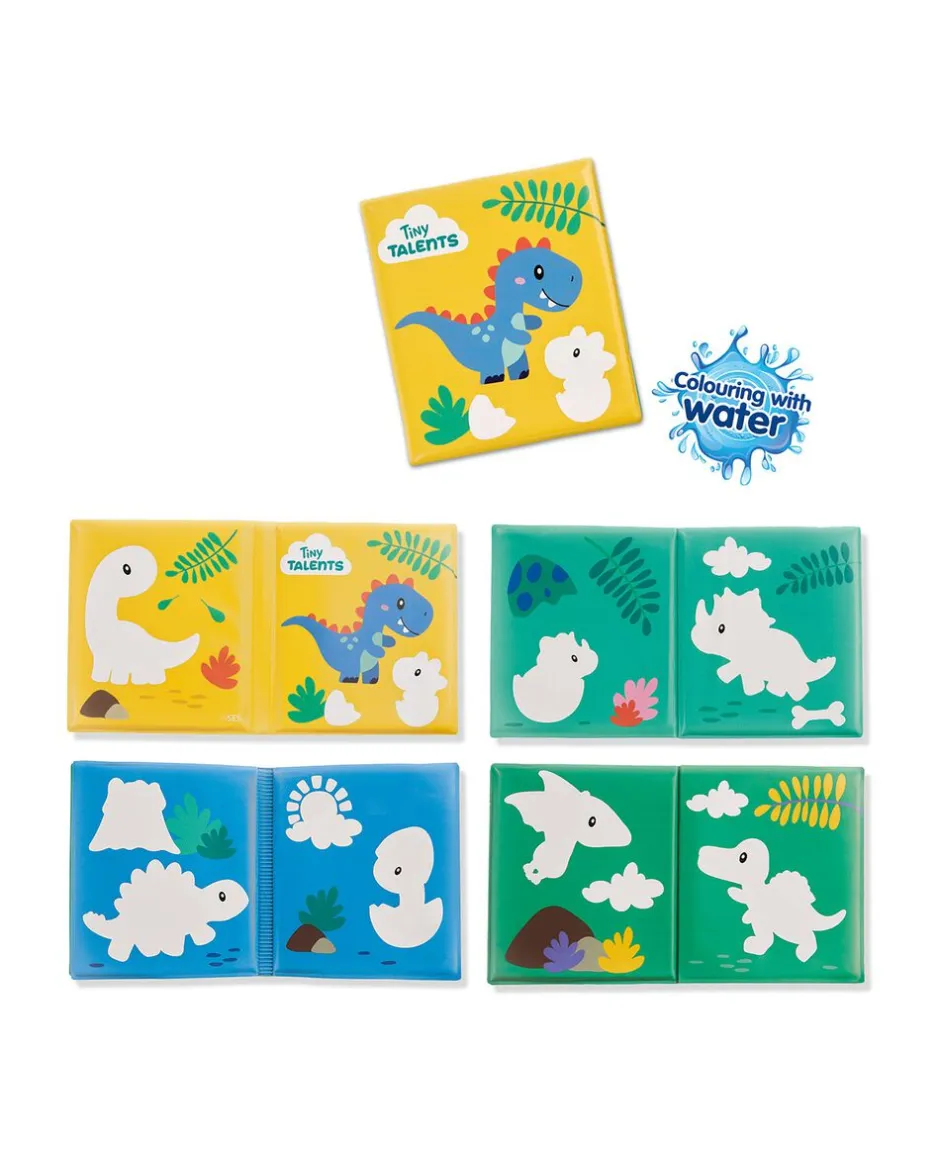 Hver side indeholder 15 skjulte billeder og kan bruges igen og igen, fordi dinosaurerne forsvinder, når bogen tørrer.