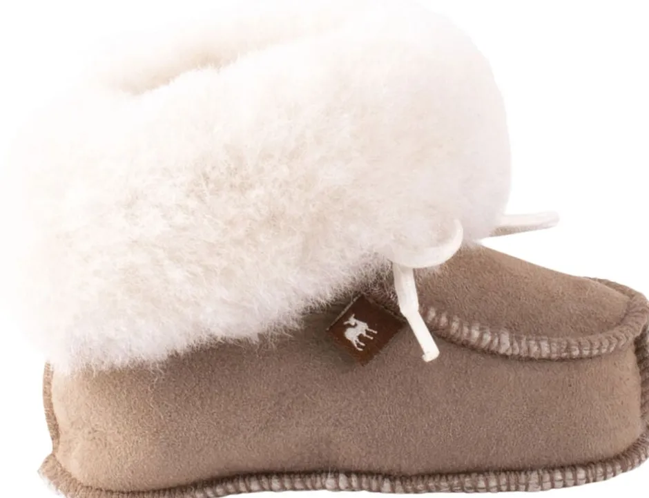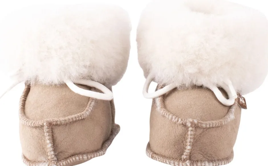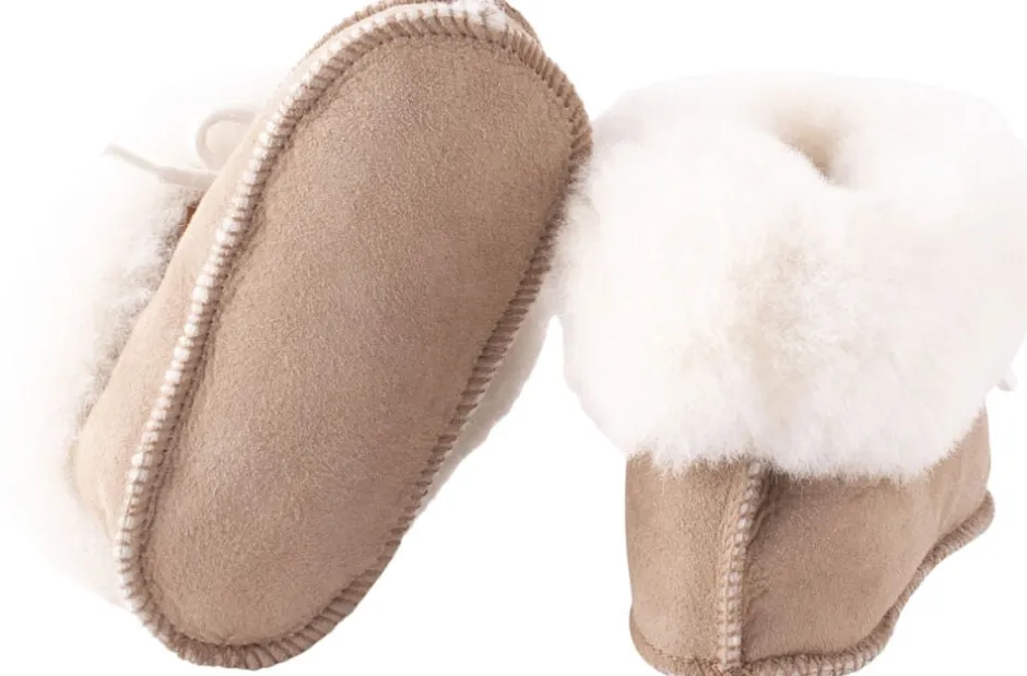 Shepherd Gävle et par behagelige og varme babysutsko i fåreskind. Sutskoene er udformet i en ankelhøj model med en bred foldet kant i fåreskind. De har snørelukning, hvilket gør, at de sidder godt og er lette at tage af og på. Blød sål i ruskind.