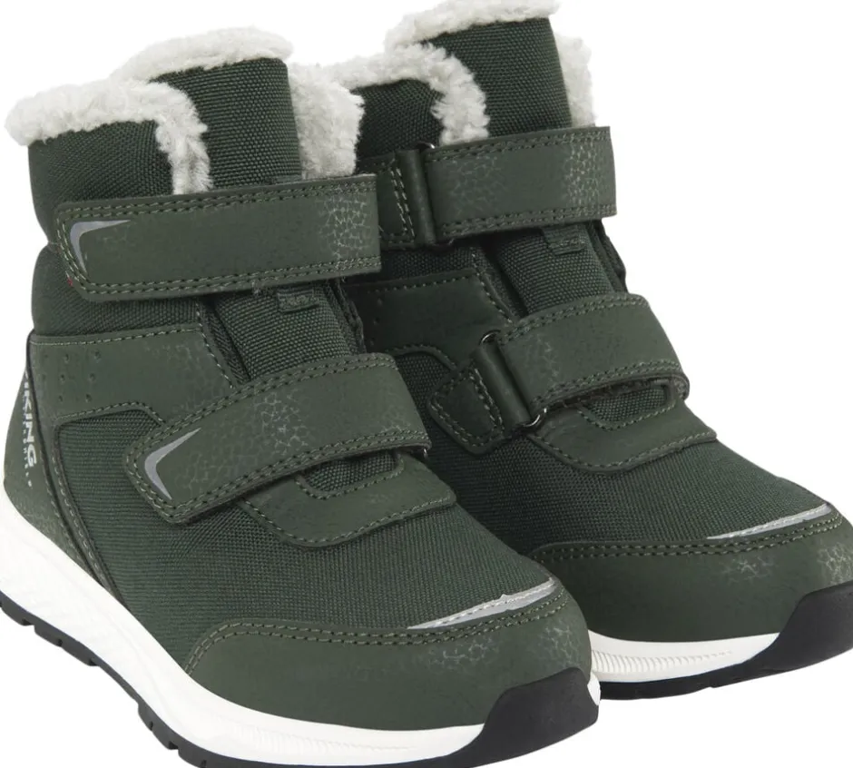 Styrk dit barns eventyrlyst med denne meget robuste støvle, der er bygget til alle dagens eventyr. Equip Warm WP 2V har en stabil, støttende og slidstærk overdel og dobbelt velcrolukning for hurtig justering. Vikings Watershield membran beskytter fødderne mod at blive våde, mens et varmt isolerende for holder kulden ude. En let mellemsål i EVA dæmper hvert skridt på vejen og en ydersål i gummi giver et fremragende greb på glatte overflader.