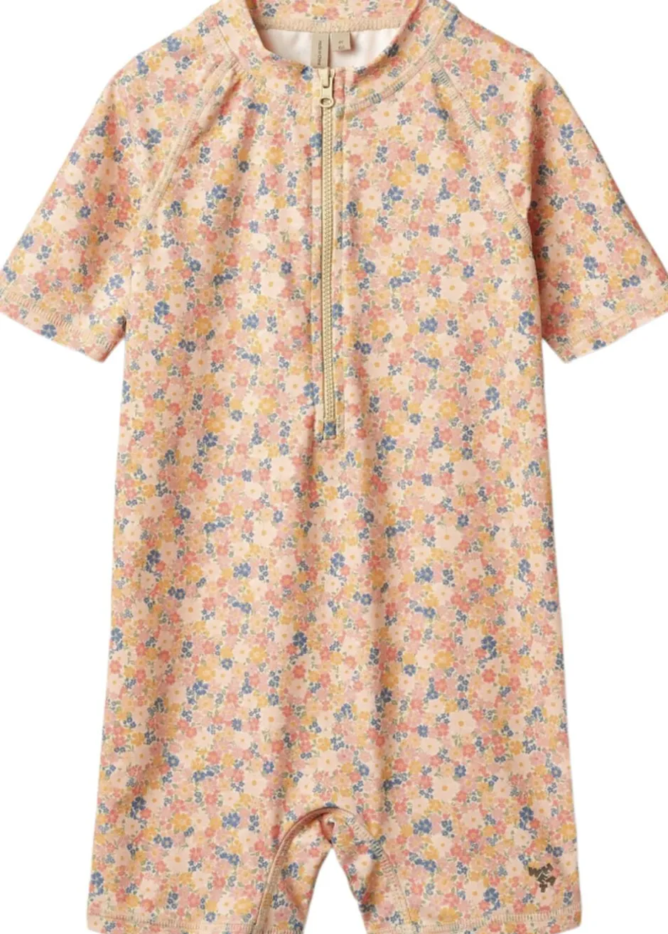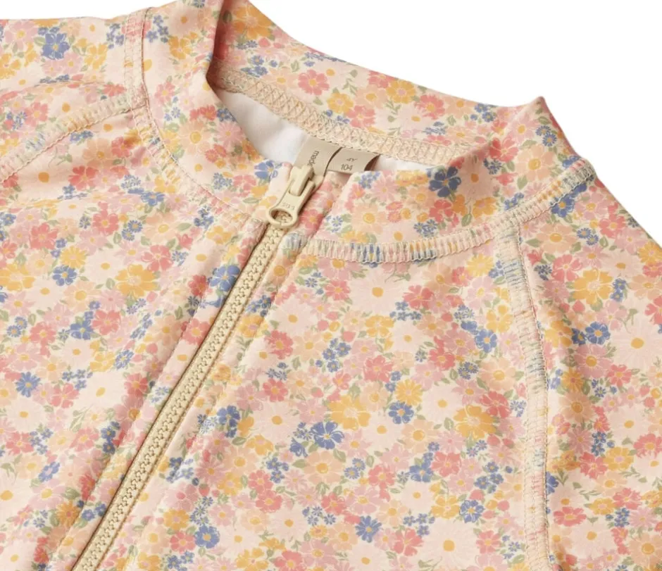 Unisex bade heldragt med korte ærmer og ben til børn. – Tæt pasform – Lille krave – Lynlås halvvejs ned foran – Raglanærmer – Wheat signaturprint Wheats badetøj er perfekt til en dag på stranden, ved poolen eller blot til vandleg i haven. Alt vores badetøj er overvejende produceret i genanvendt polyester, og er yderst behageligt for dit barn at have tæt på kroppen. Bade heldragten har en lille krave til at beskytte hals og nakke, samt raglanærmer, så dit barn ikke bliver udsat for sol på de sarte områder af kroppen. Desuden har den en lynlås ned foran, så den er nemmere at komme i/ud af for dit barn. Stylen er med UV 40+/UVF 40+ beskyttelse og er Standard 100 fra OEKO-TEX® certificeret. Forlæng dit badetøjs levetid: – Ved altid at skylle dit badetøj efter badning i klor- eller saltvand. – Ved at følge vaskeanvisningerne — – Standard 100 fra OEKO-TEX® – 83% Genanvendt polyester, 17% Elastan – GRS certificeret