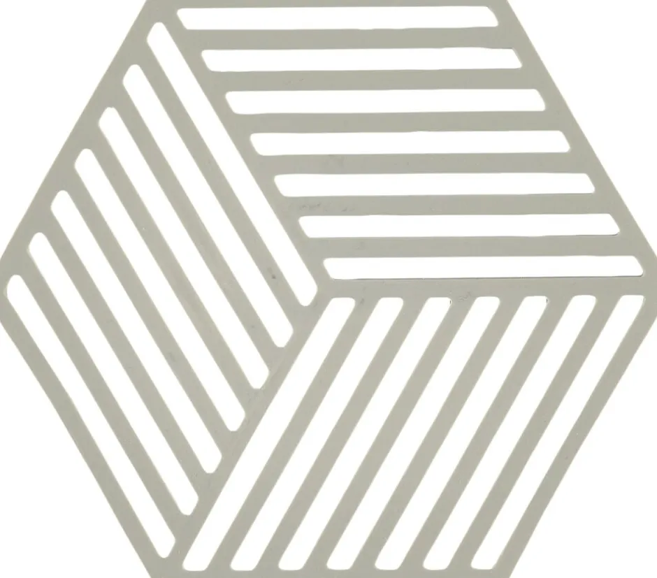 Hexagon bordskånerne i silikone er så grafisk dekorative, at de indbyder til at lægge en flok ud i hele bordets længde uden at stille noget på dem. De er varmebestandige op til 250 °C og kan vaskes i opvaskemaskine. 16 x 14 x 0,9 cm.