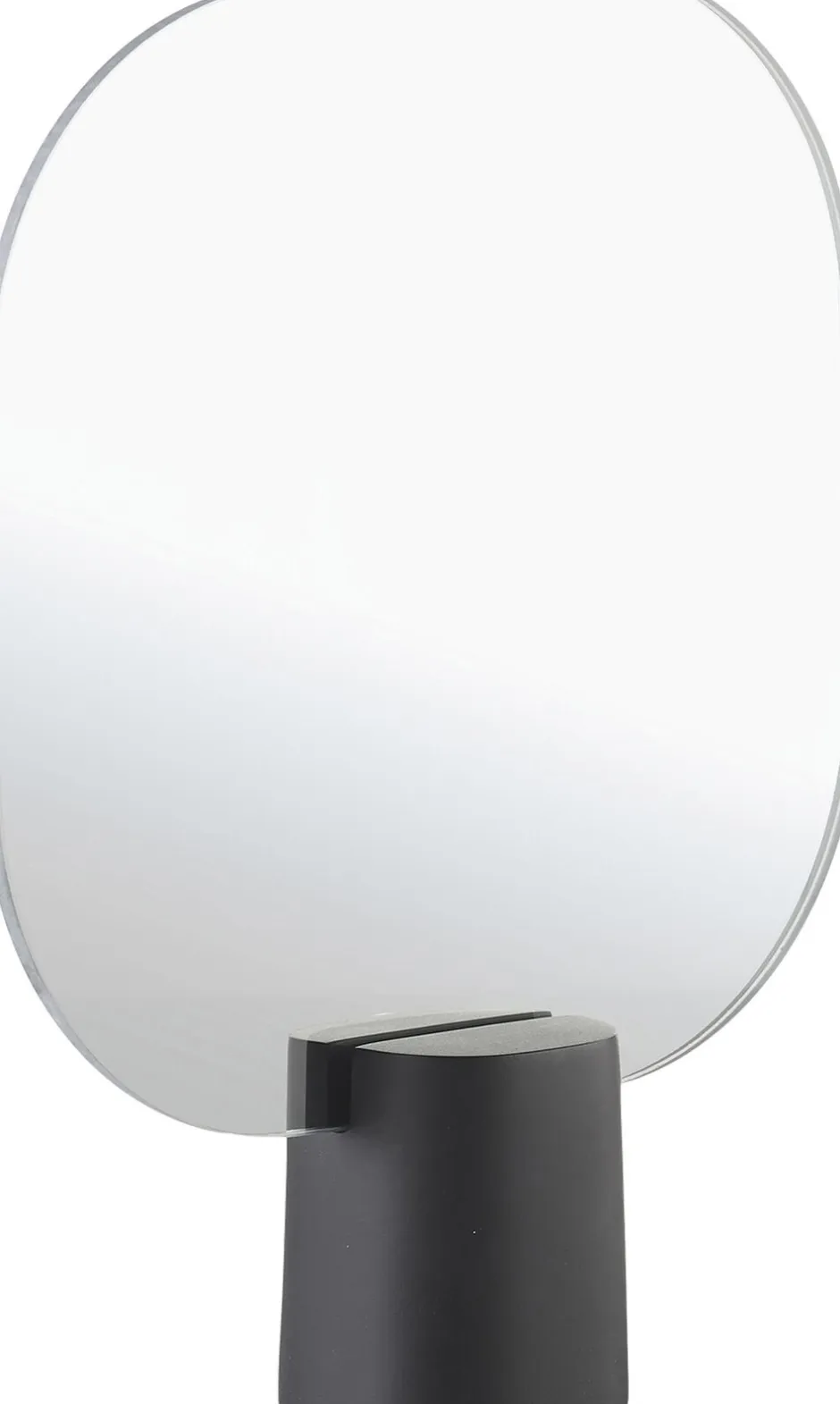 Bordspejlet i hærdet glas med betonfod har et organisk og enkelt udtryk. Det stjæler ikke rummet, men glider naturligt ind i indretningen på både badeværelse, soveværelse og entrehylde. Beton er et populært materiale, da det passer godt sammen med naturmaterialer som træ, keramik og sten. Desuden har beton den fordel, at det bliver brændt ved lavere temperatur end keramik, så man sparer en smule på energien under produktionen. Designteamet Mavro//Lefèvre står bag denne stilsikre udvidelse af Time-universet.