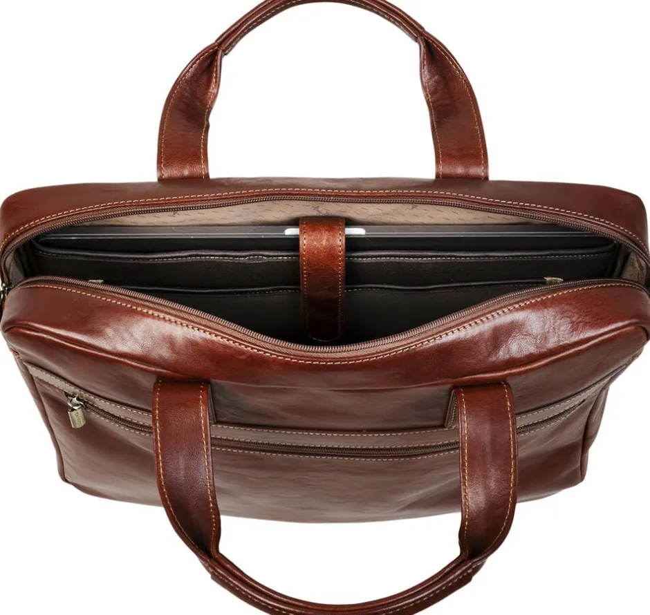 Denne tidløse, minimalistiske computertaske er designet til daglig brug. Tasken har et neoprenrum, der passer til en 15-tommers bærbar, tablet og dokumenter. Foran er der en lynlåslomme med lås, hvor du kan opbevare mobiltelefon, kabler, kuglepenne, nøgler og andre daglige nødvendigheder. Tasken kan bæres i hånden eller komfortabelt over skulderen med den justerbare og aftagelige skulderrem. Derudover har tasken en funktion til nem fastgørelse på en trolley. Det stilfulde og autentiske italienske læder, som er kendetegnende for Tony Perotti, er fremstillet på en miljøvenlig måde.