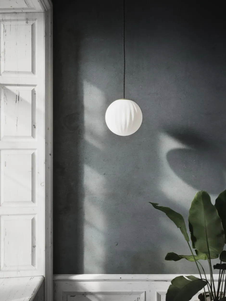 Nordic Tales’ Bright Modeco Pendler lamper omfavner begrebet “Artdeco” på en klassisk og elegant måde. Det rene minimalistiske look kombineret med elegante bløde riller og messing detaljer giver et skønt udtryk. Det hvide opal glas giver et blødt diffust lys, der oplyser rummet i en helhed og giver en hyggelig atmosfære.