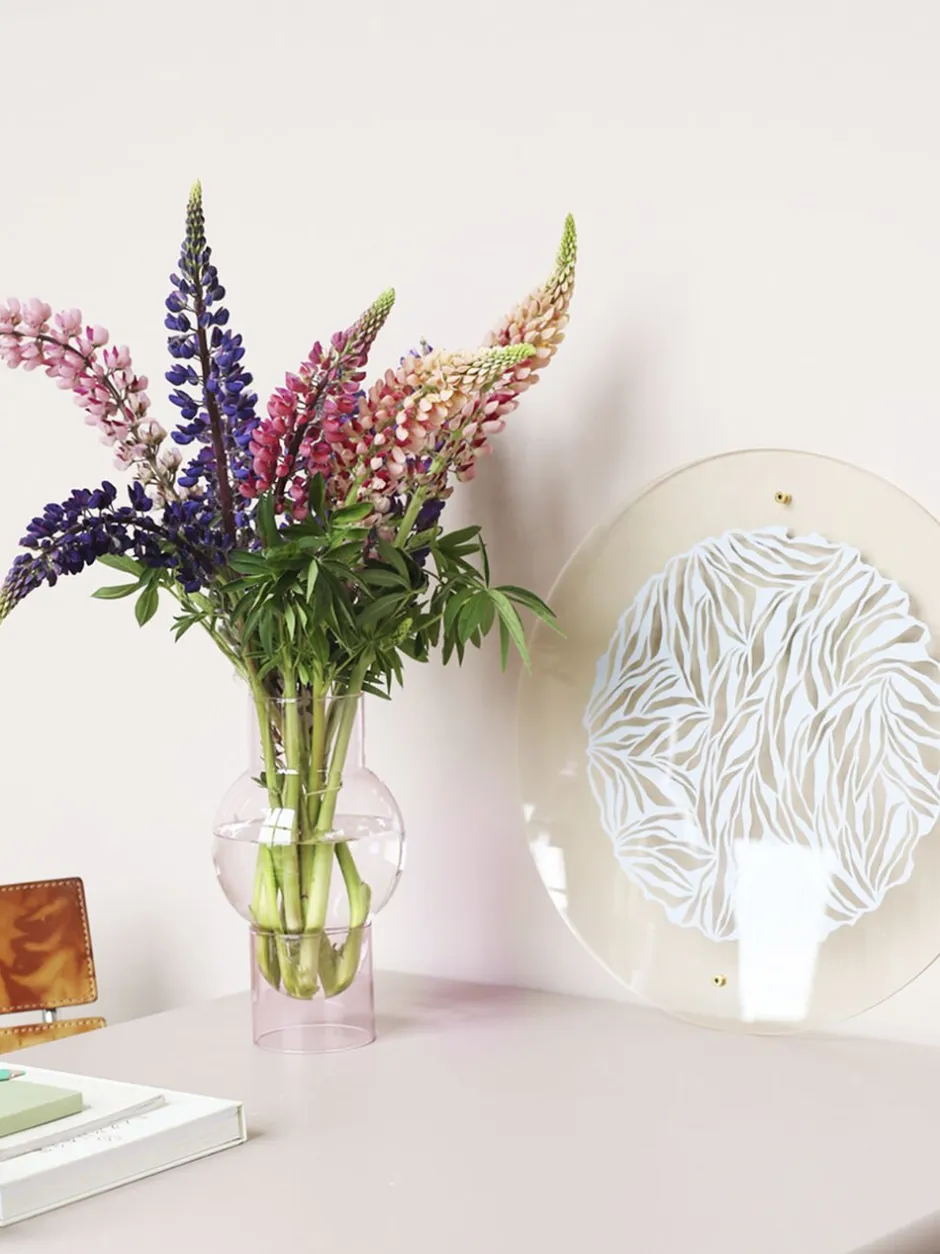 MODEL: ROSE TUBE + AMBER BUBBLEBubble Tube kollektionen er en serie af håndlavede glasvaser designet til en større buket. Glasvasen fås her i en rav farvet bubble. Den elegante vase hviler i en cylinderformet fod af rosa farvet glas og giver vasen en lethed og et feminint udtryk. MÅLÅBNING Ø90mmBOBLEN Ø150mmTOTAL HØJDE H270mmVasen er designet af arkitekt Mikkel Lang Mikkelsen.