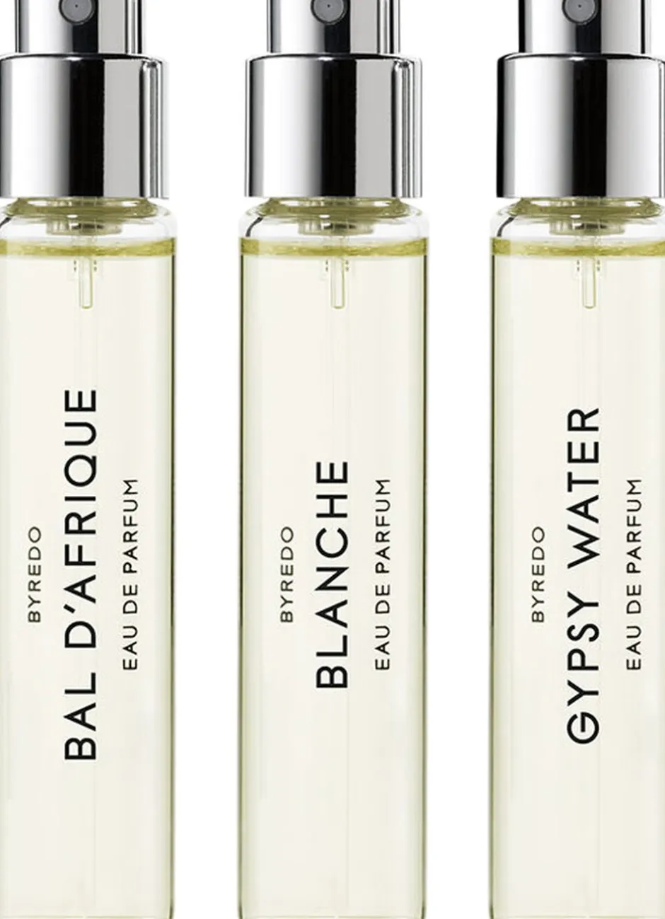 La Sélection Nomade er en præsentation med de tre mest ikoniske Byredo-dufte: Bal d’Afrique, Blanche og Gypsy Water.