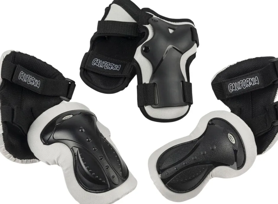 California Pro sikkerhedssæt Med håndleds-. albue- og knæbeskyttere i praktisk net Str M (7-10 år)