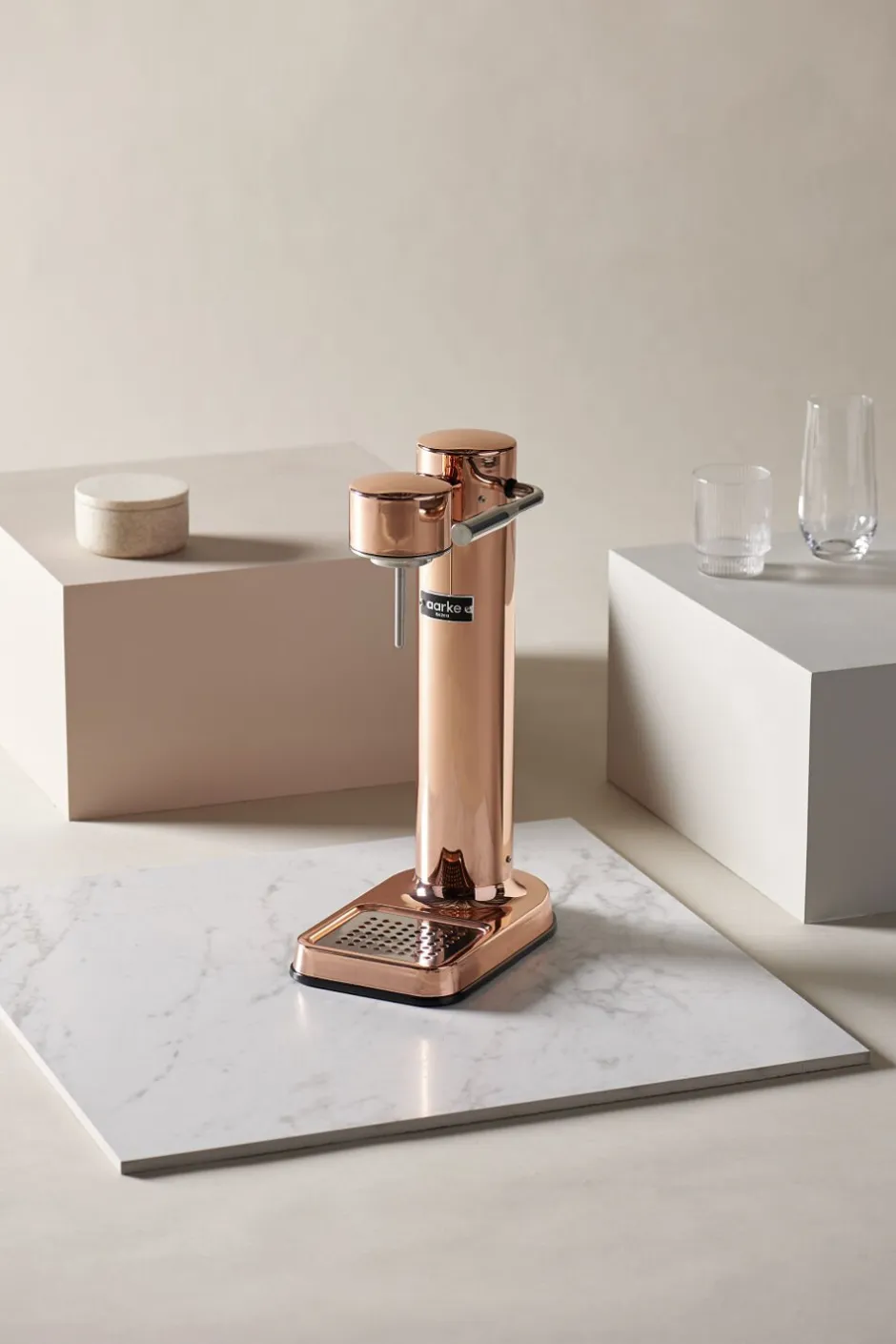 CARBONATOR 3 COPPER er designet med brugervenlighed i tankerne. Det gør det nemt at lave kulsyreholdige drikke ved blot at tilføje genanvendelige kulsyrepatroner og trykke på en knap.
