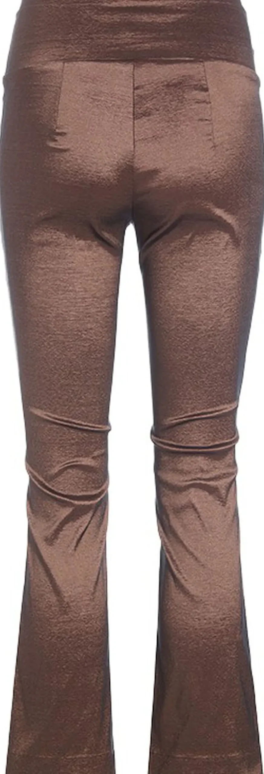 Bukser i enkelt snit med flatterende pasform, der vider let ud forneden, hvilket giver en flot silhuet. Buksernes metalliske shine gør dem oplagte at bruge som et glamourøst indslag i hverdagen såvel som til en middag i byen kombineret med høje hæle.