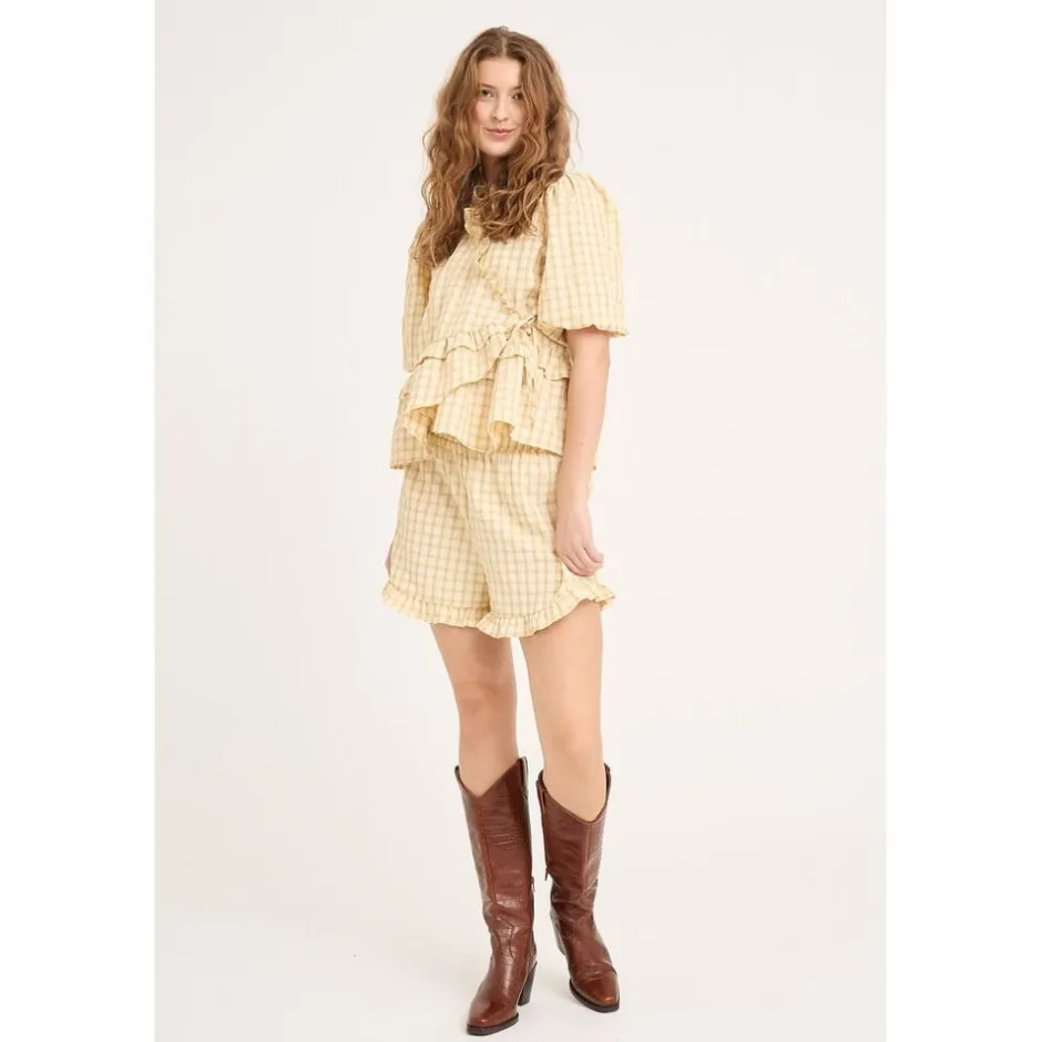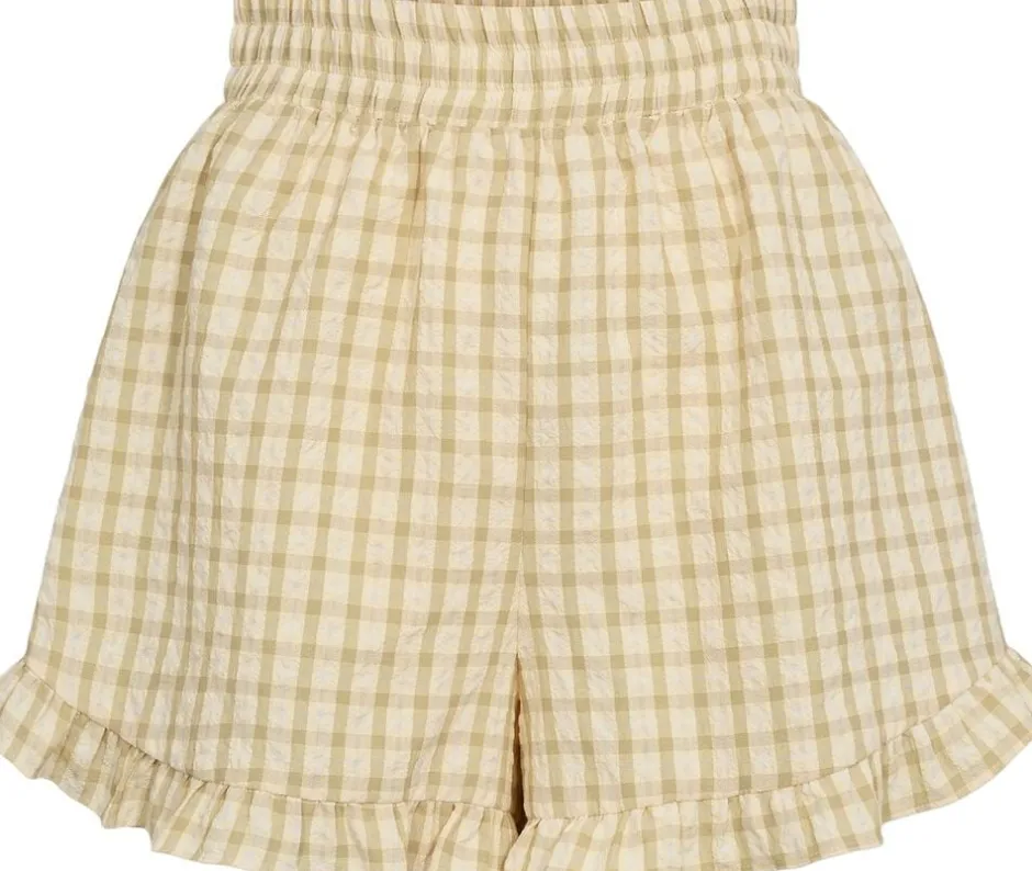 Aulina Shorts er lette shorts med elastisk linning og flæsekant ved sømmen. Shortsene har en afslappet pasform og er lavet af et let, tekstureret stof. Shortsene passer til størrelsen. – Elastisk linning – Flæsekant ved kanten – Let og tekstureret stof