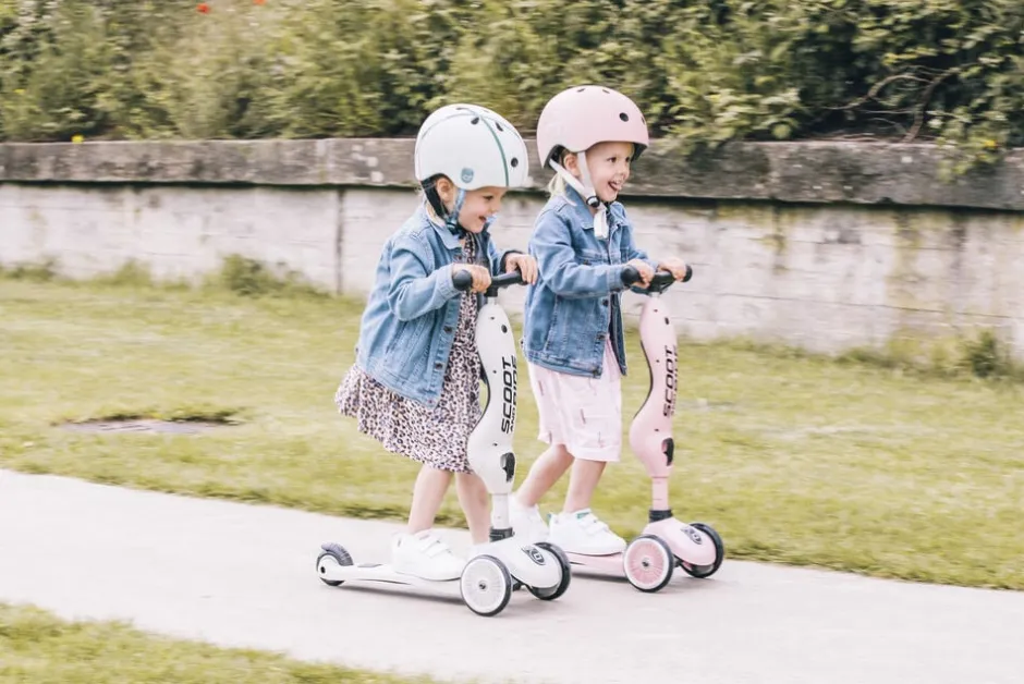 Highwaykick 1 fra Scoot and Ride, er designet med en patenteret sikkerhedspude, som giver ekstra beskyttelse når scooteren er i brug. Løbehjulet drejes ved hjælp af barnets vægt, hvilket mindsker risikoen for køretøjet tipper forover.