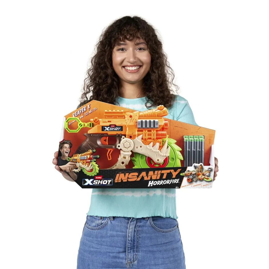 Insanity har udviklet sig Oplev den episke Next Level-kraft fra Insanity HorrorFire Reaper X Med tilstrækkelig styrke til at nå mål op til 27 m væk Brug den sek undære udløser til at aktivere Reaper Xs episke savblad for endnu mere handling