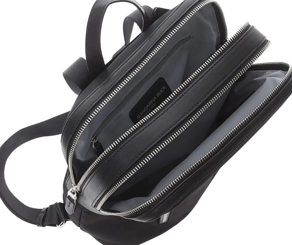 Mandarina Duck Hunter er en feminin rygsæk, som er fremstillet i nylon med fine detaljer på lommerne. Rygsækken har to store rum, der begge lukkes med lynlås. På taskens yderside findes ligeledes lynlåslommer