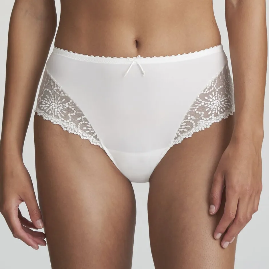 Elegant højtaljet trusse med det smukkeste broderi som giver dig en smuk silhouette. Bagen er i blødt microfiber som sikre dig komfort. Jane er en af Marie Jos mest ikoniske serier – som altid kommer i et hav af sæson farver. Men glem aldrig basis lingerie skuffen. Som du her kan fylde op med Jane i den nye elegante basisfarve, Bois De Rose, som er perfekt under det lyse tøj – sommer såvel som vinter.. Er en høj trusse ikke noget for dig, så findes der flere andre varianter.