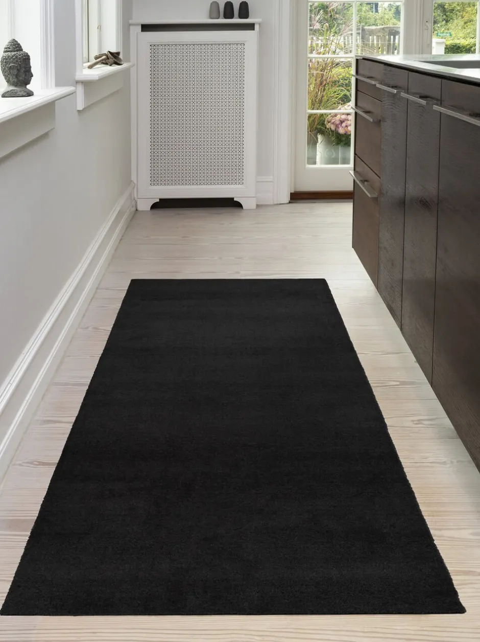 Den tætte lurv i 100% polyamid er hele 0,7 cm. tyk. Måtten/løberen er blød, slidstærk og suger fugt og snavs. Bagsiden er i vinyl, så den ligger stabilt på gulvet. De er praktiske og lette at rengøre. Kan maskinvask ved 30°C og kan støvsuges.